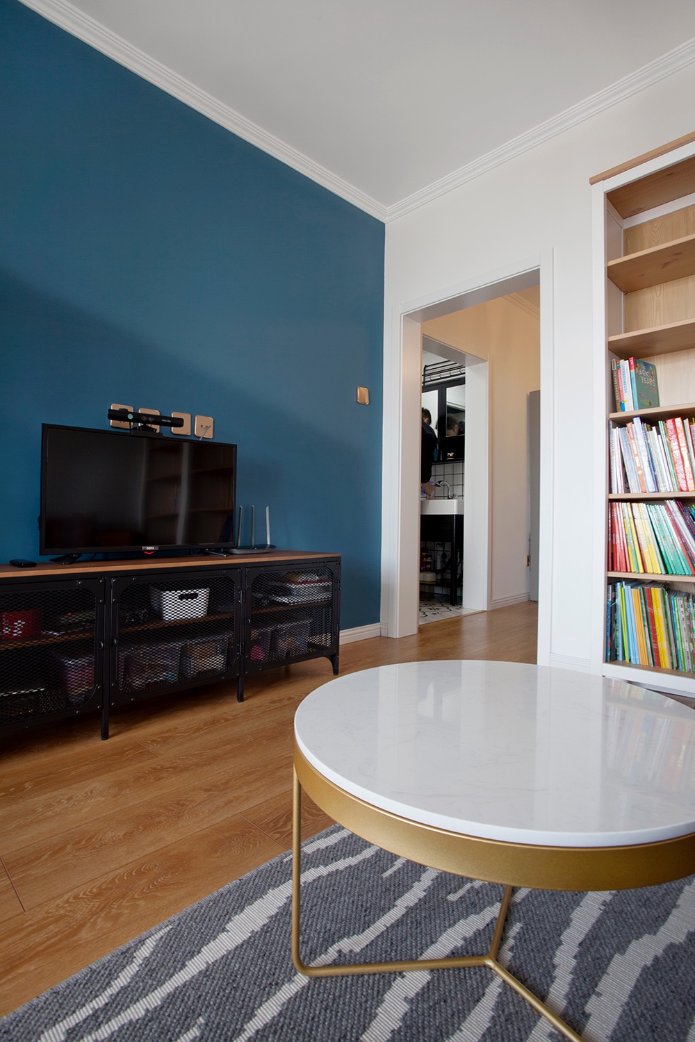電視背景墻就簡(jiǎn)單刷一個(gè)藍(lán)色就行了,簡(jiǎn)單干凈就行。