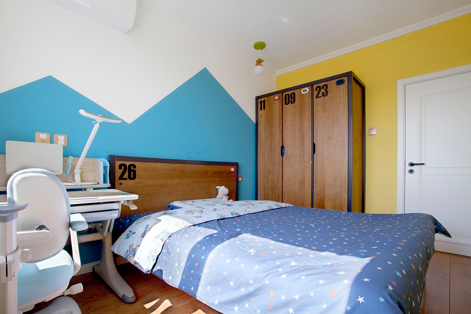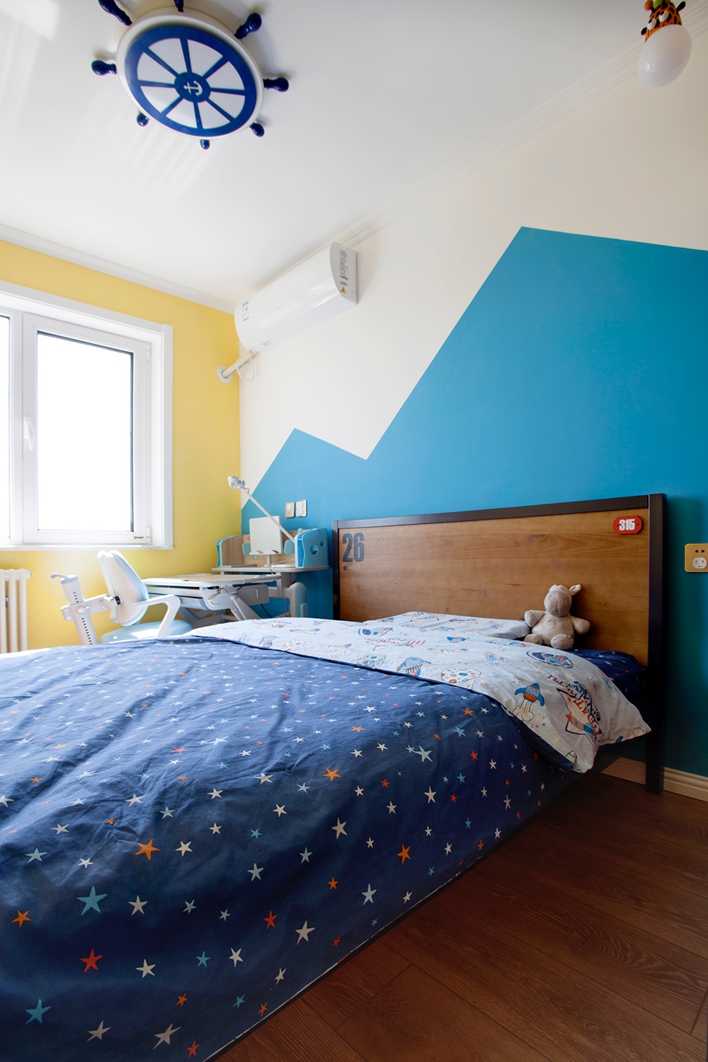 兒童房整體采用一些亮色調(diào)色來(lái)搭配,顯的活躍。