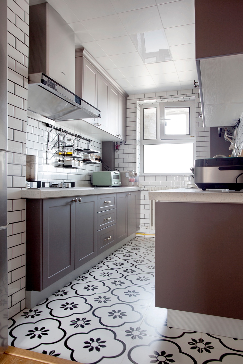 方便后期照看孩子方便和解決門廳采光問(wèn)題,廚房做成開(kāi)放式的。