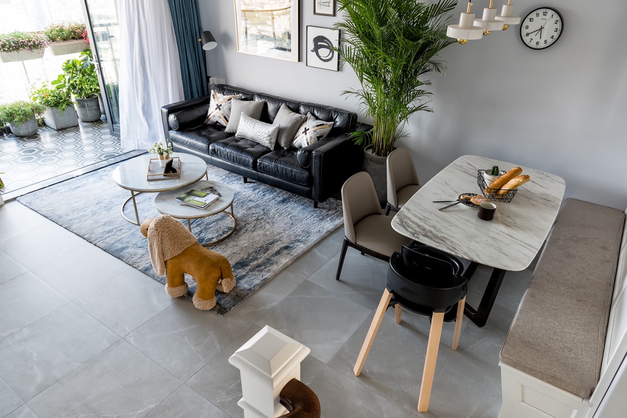 餐廳做了一個(gè)卡座來節(jié)省空間,整體以色調(diào)以灰色為主。