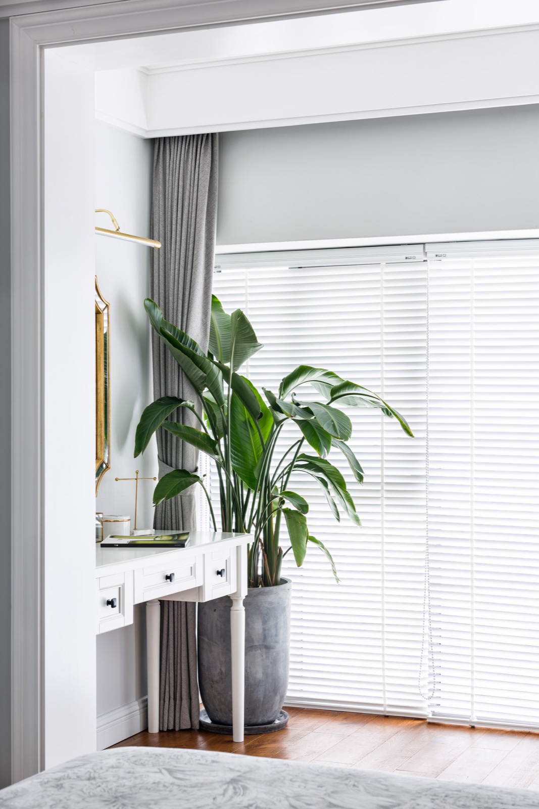 大陽臺一邊做儲物柜,一邊做梳妝臺,采光好。