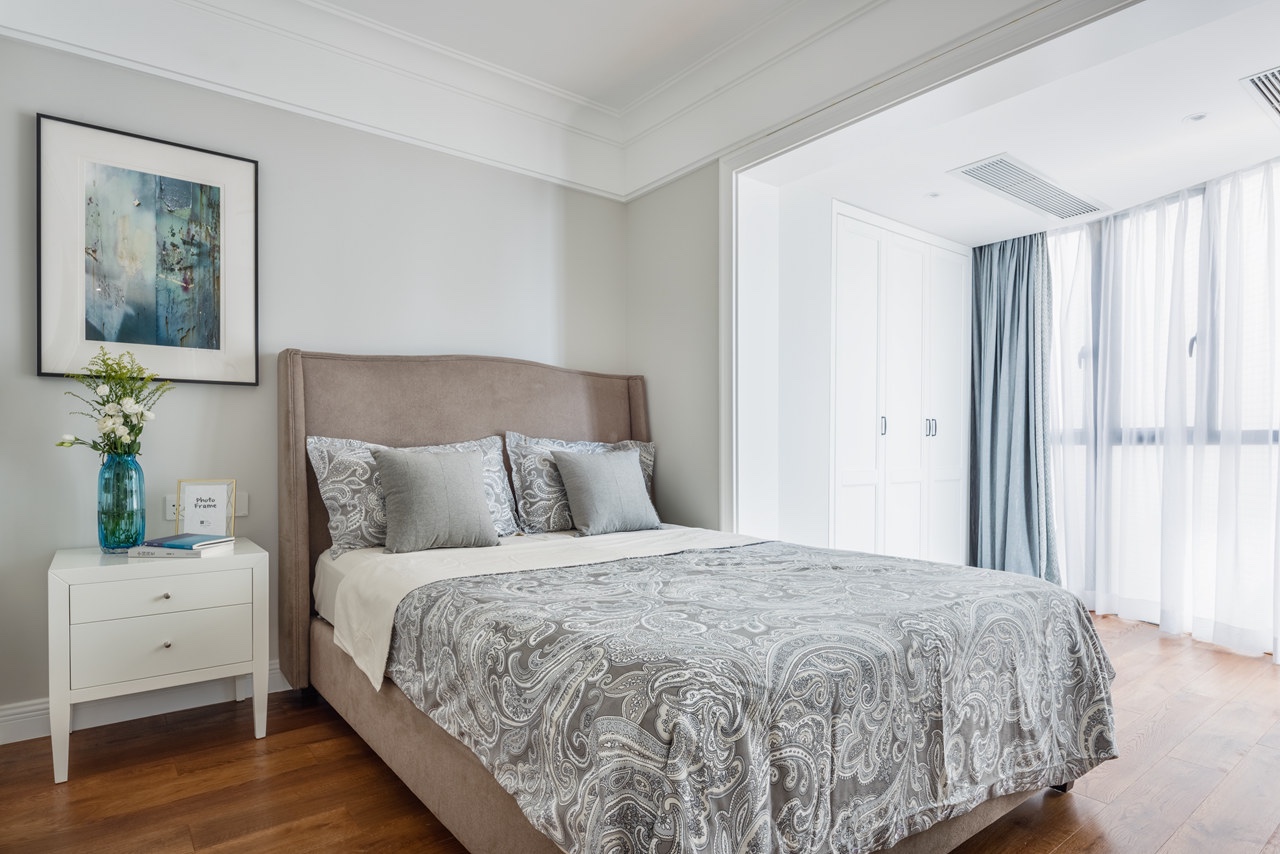 臥室墻面沒有過多的裝飾,比較清爽。