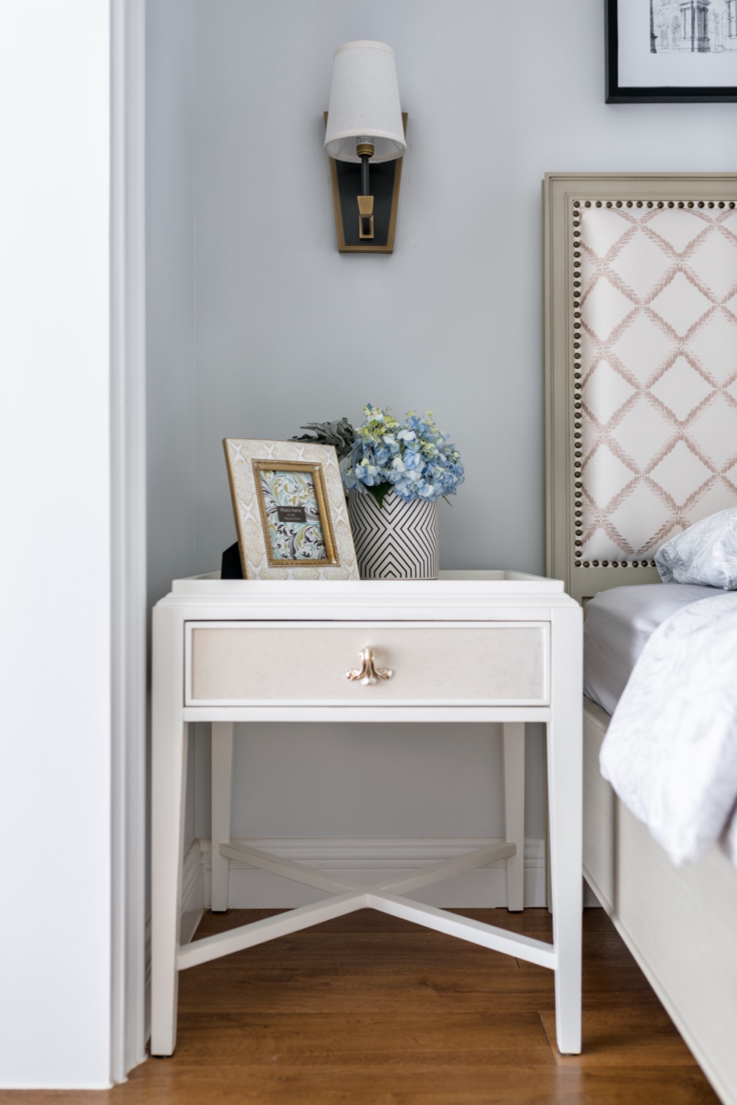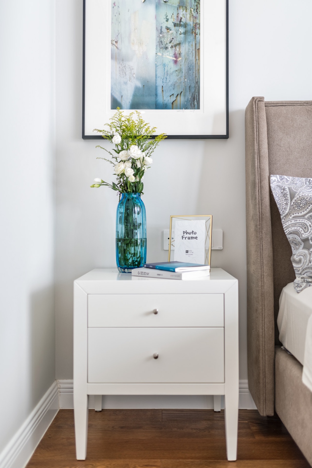 床頭柜選的比較簡單,后期地面好清理衛(wèi)生,不回顯的擁擠。