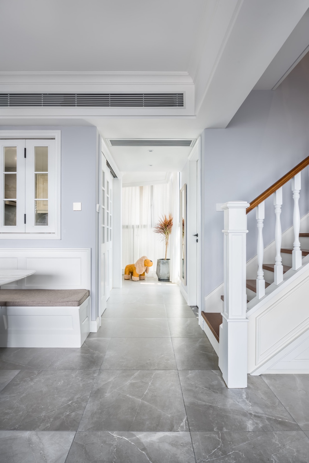 從入戶門進(jìn)來因?yàn)閮蛇叾加写蟠皯舨晒獗容^好,給人感覺走到便不會太擁擠。