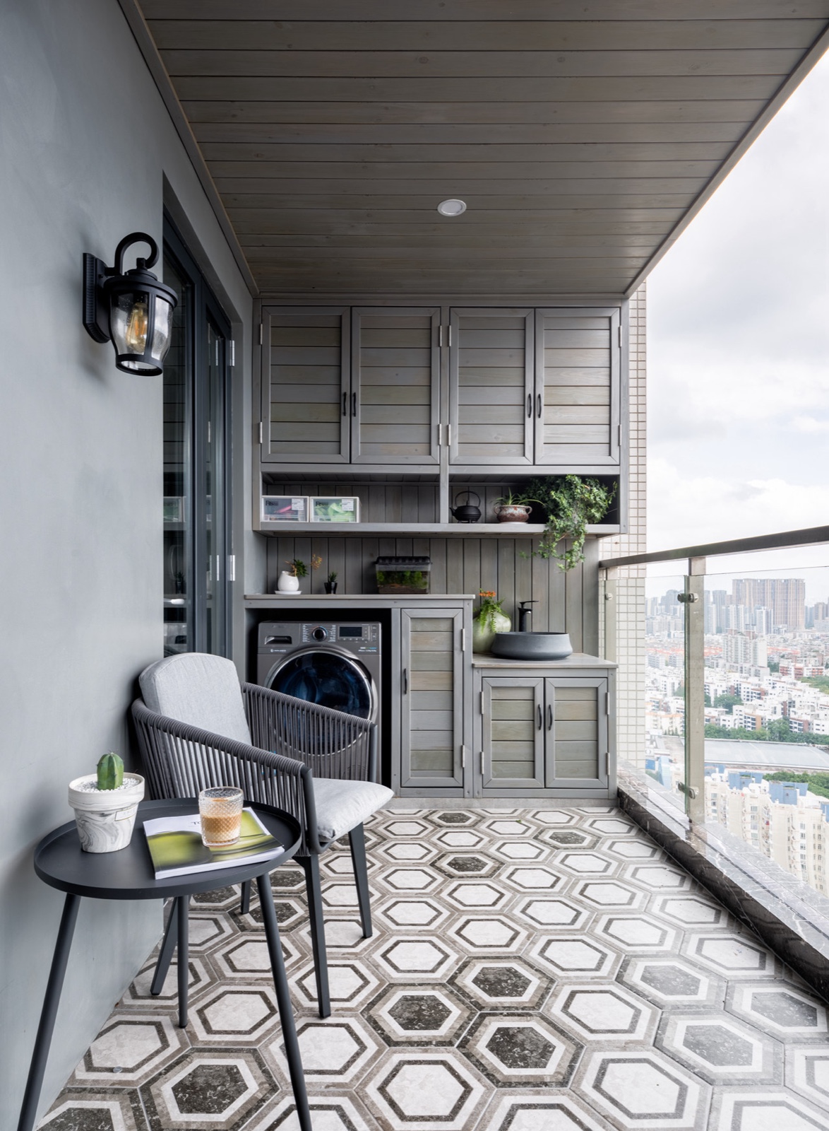 臥室的超大陽臺做了一個(gè)休閑和生活陽臺。