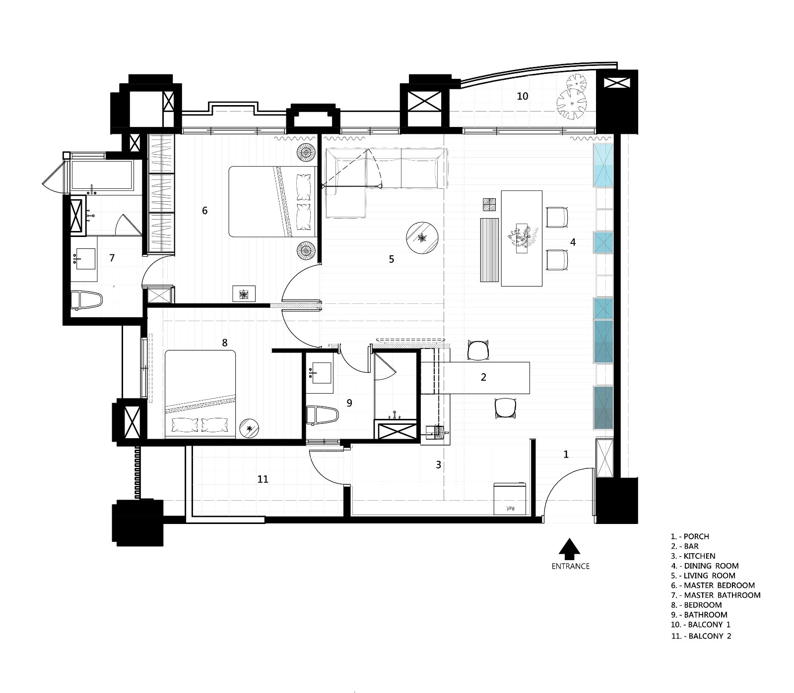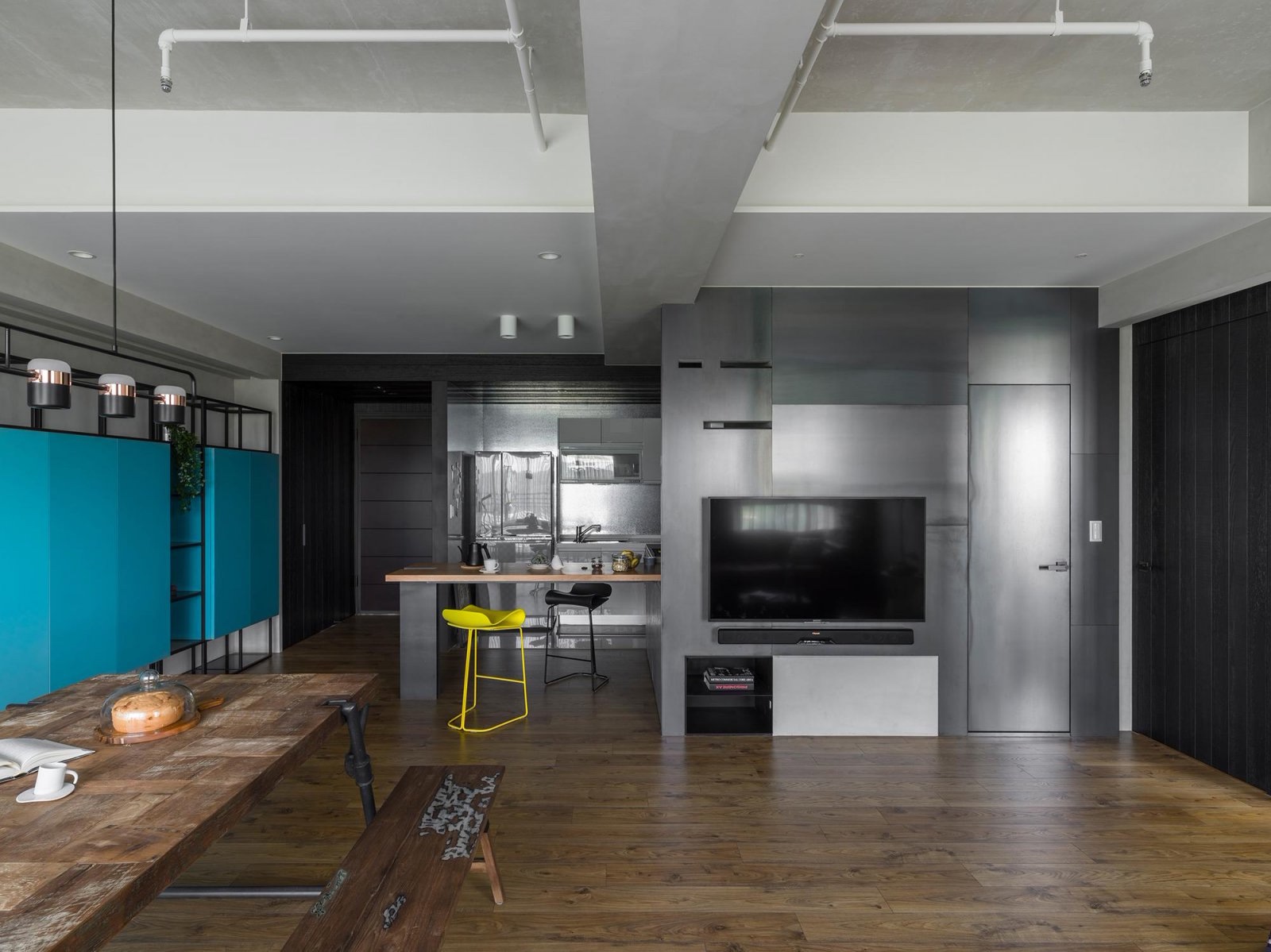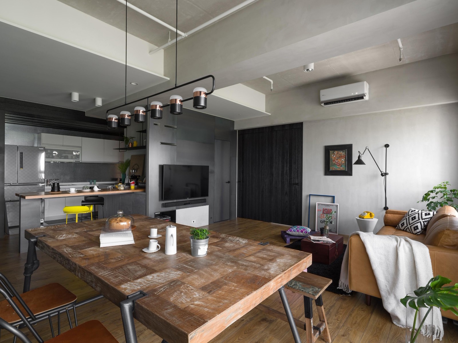 該戶型為3居室改成2居室,業(yè)主不喜歡太明亮的感覺,有點偏工業(yè)風。