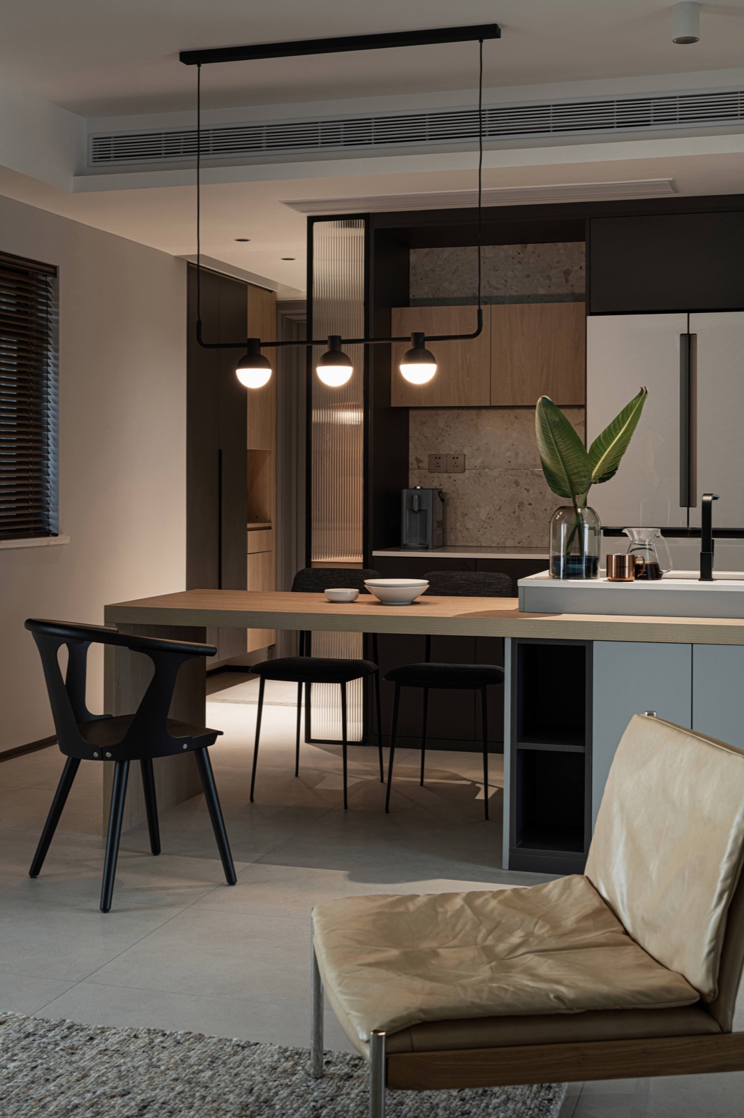 在廚房門口設(shè)計(jì)了一個(gè)島臺(tái),來代替餐桌。