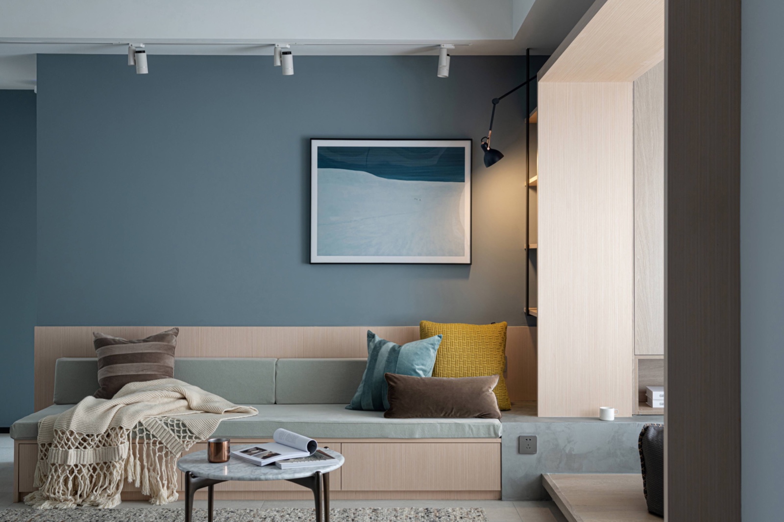 客廳沙發(fā)用定制卡座來代替,減少占用空間。