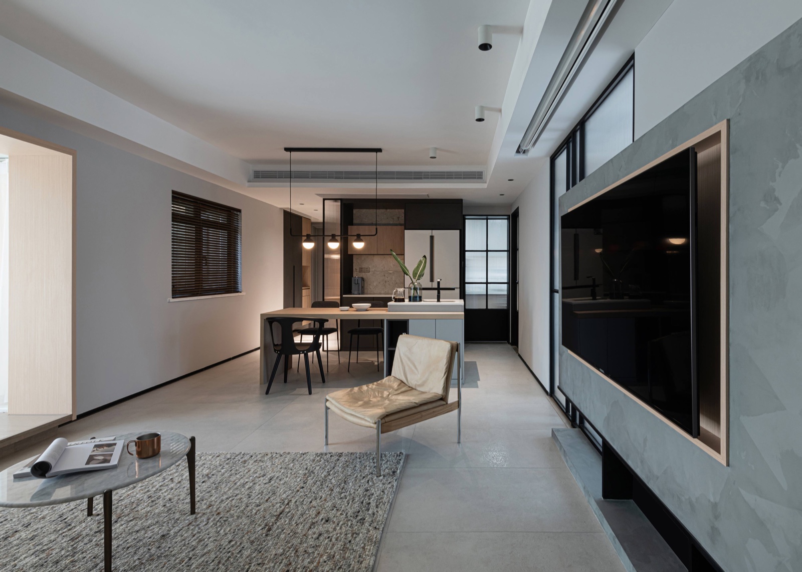 整體色調(diào)以灰色為主,地面鋪啞光的1200*600地磚,拉伸空間感。