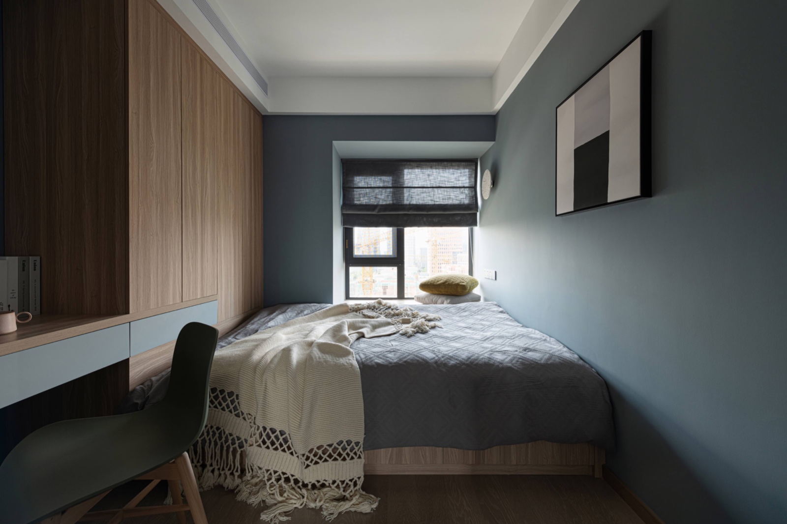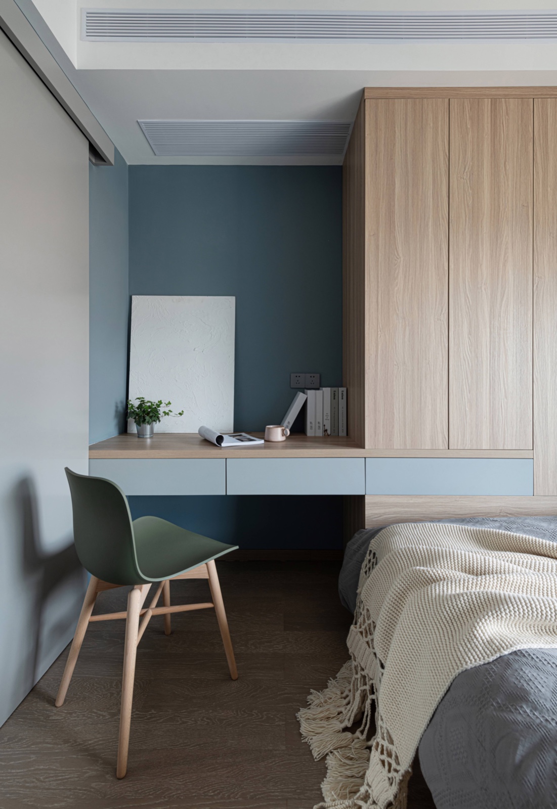 書桌與衣柜是定制一體的,及整齊有統(tǒng)一。