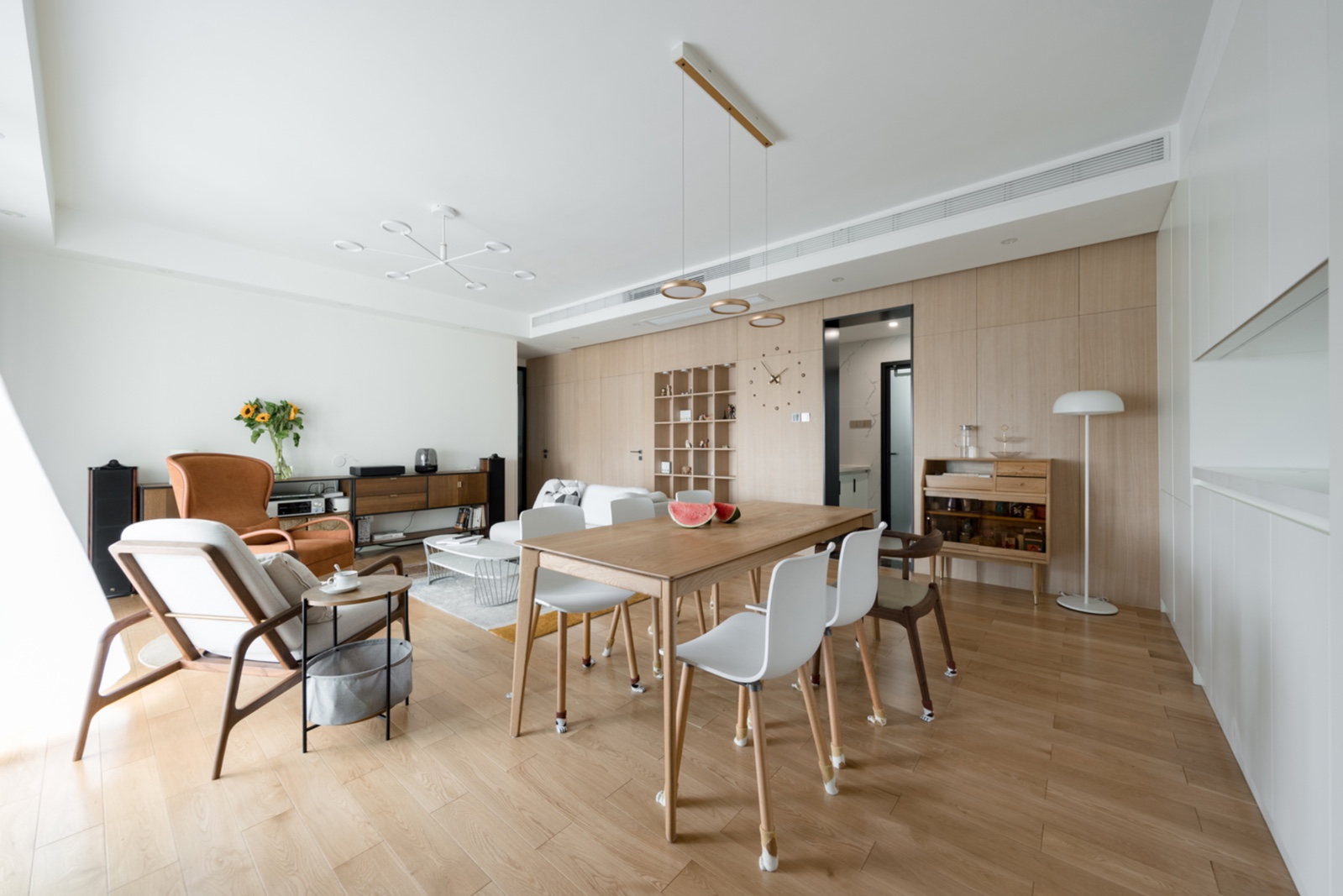 全屋以白色和木色為主。