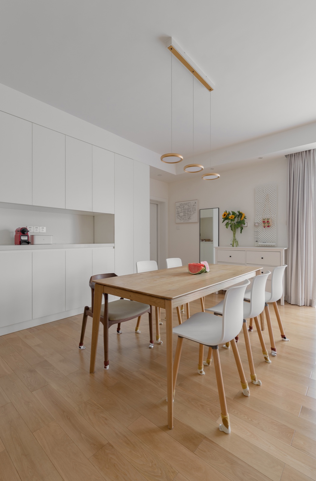 在靠墻部分一個餐邊柜是儲物式的。