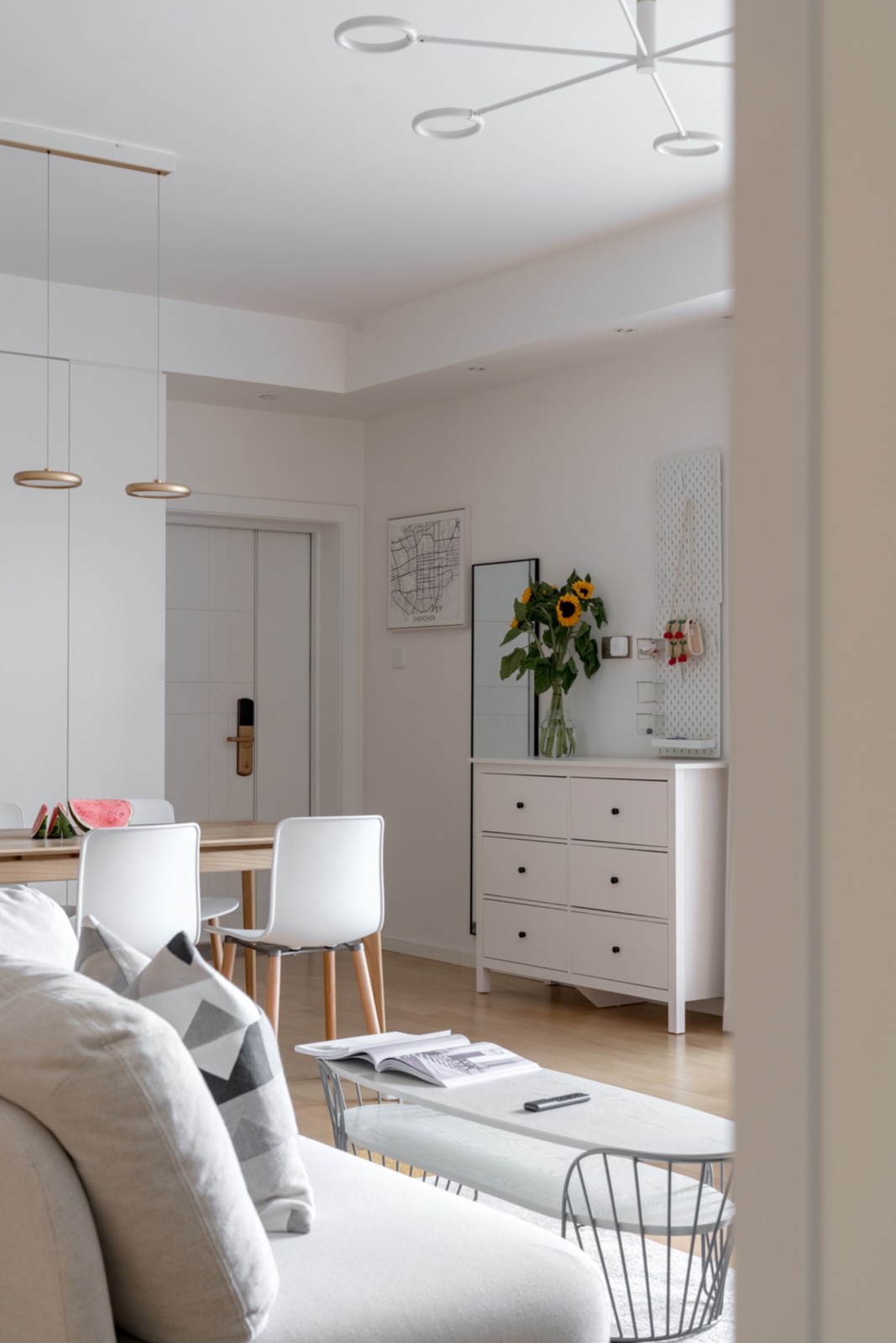 餐廳簡單一個餐吊燈,顯得干凈簡約。