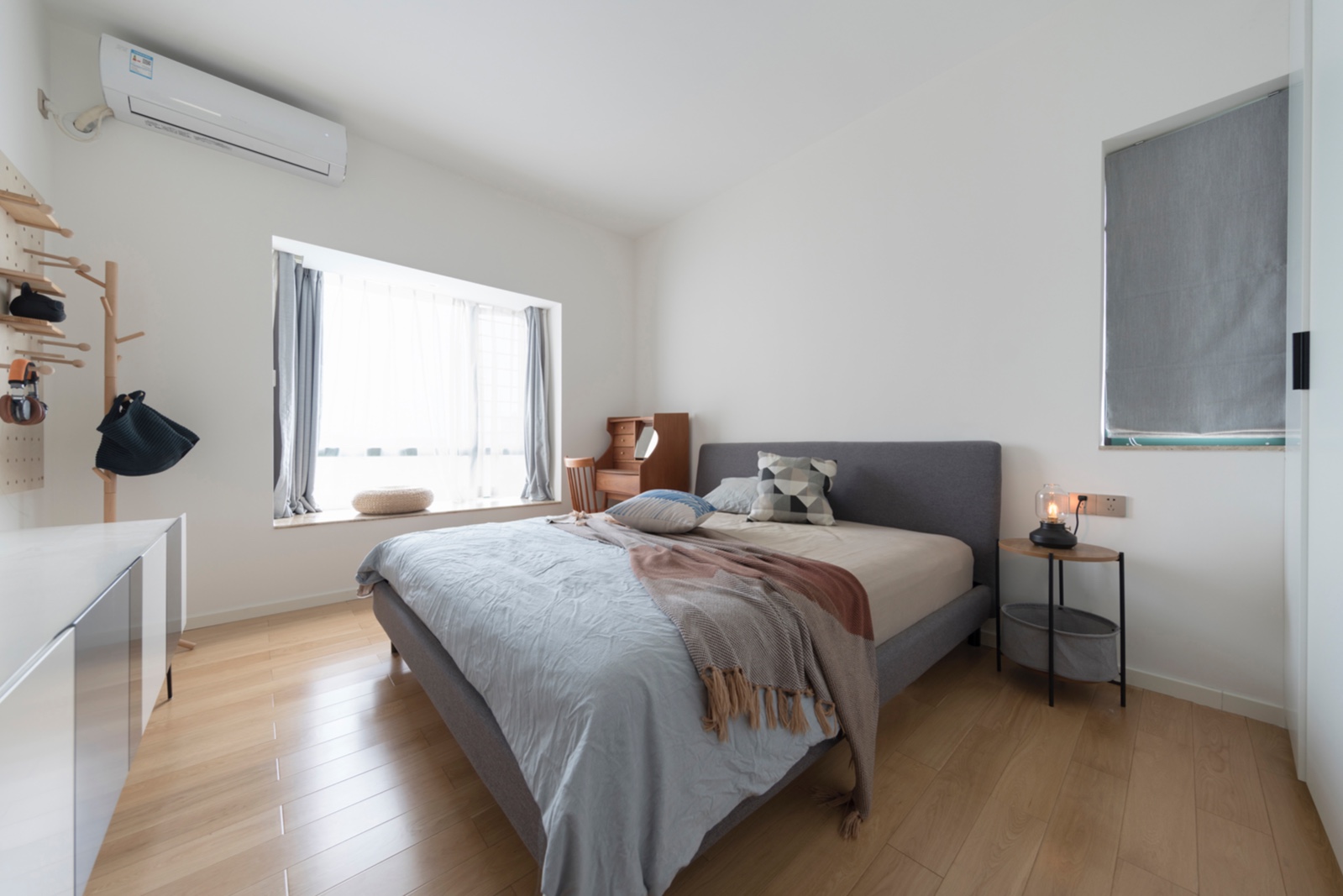 臥室比較簡單,刷白色乳膠漆,配木色床。