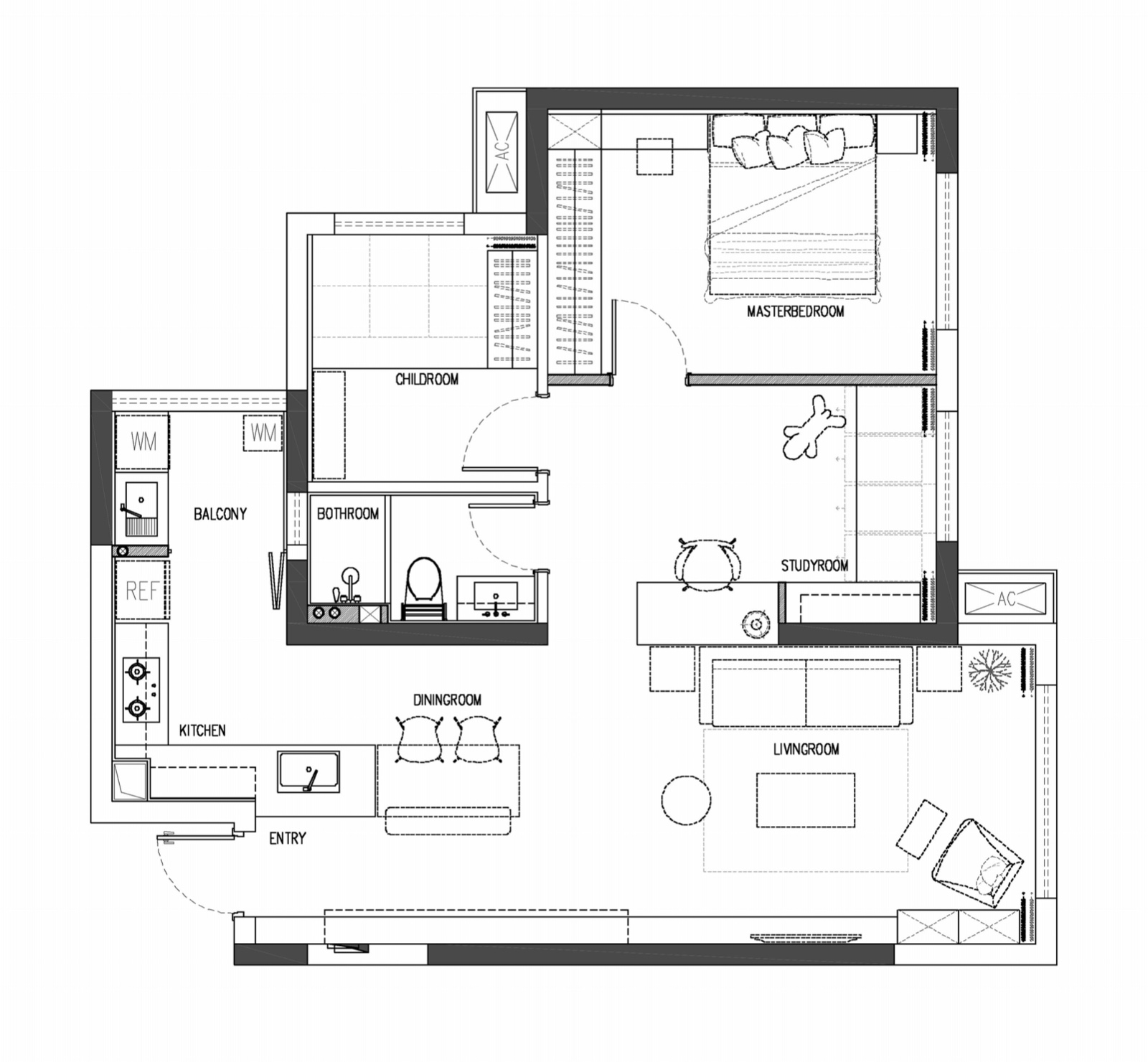 在一層一直坐一組大衣柜,更加儲物空間,整體空間也比較整齊。
