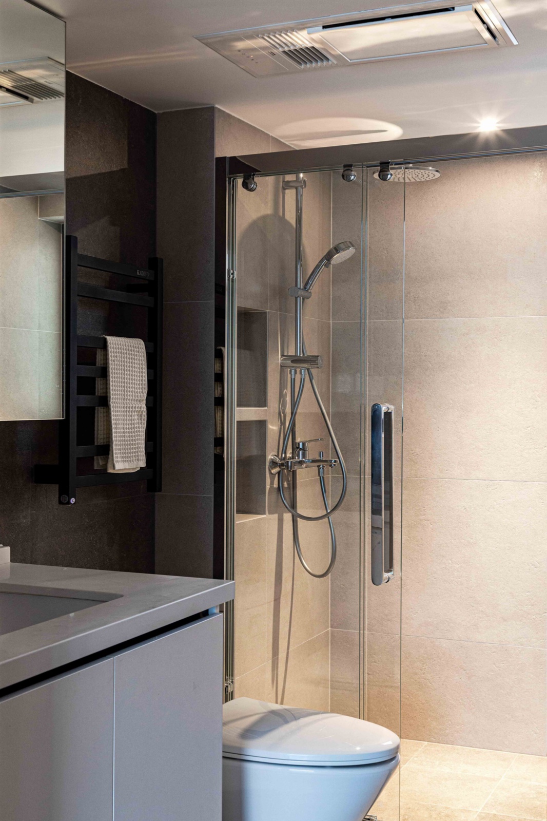 衛(wèi)生間采用干濕分離的,淋浴區(qū)用的淋浴房,這樣更衛(wèi)生干凈。