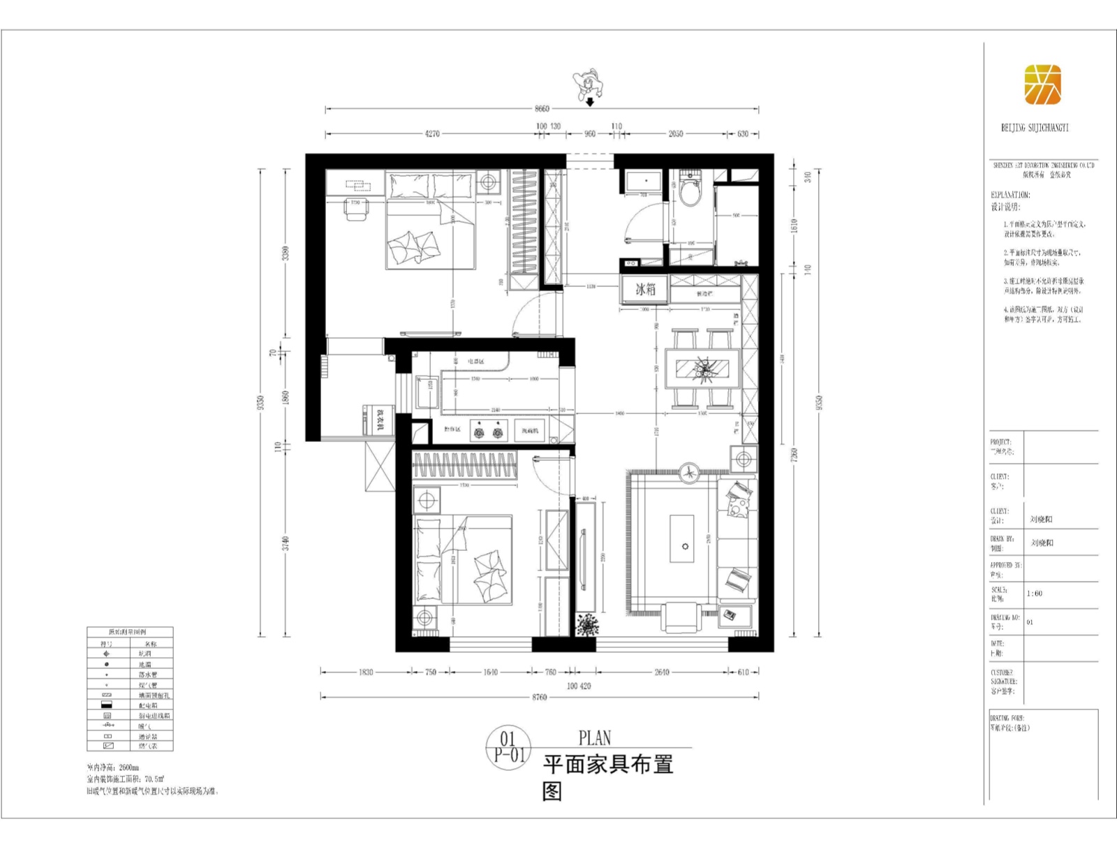 該戶型為2居室,格局有些改動(dòng),門口衣帽柜加大了,衛(wèi)生間改成干濕分離,廚房改成開放式。