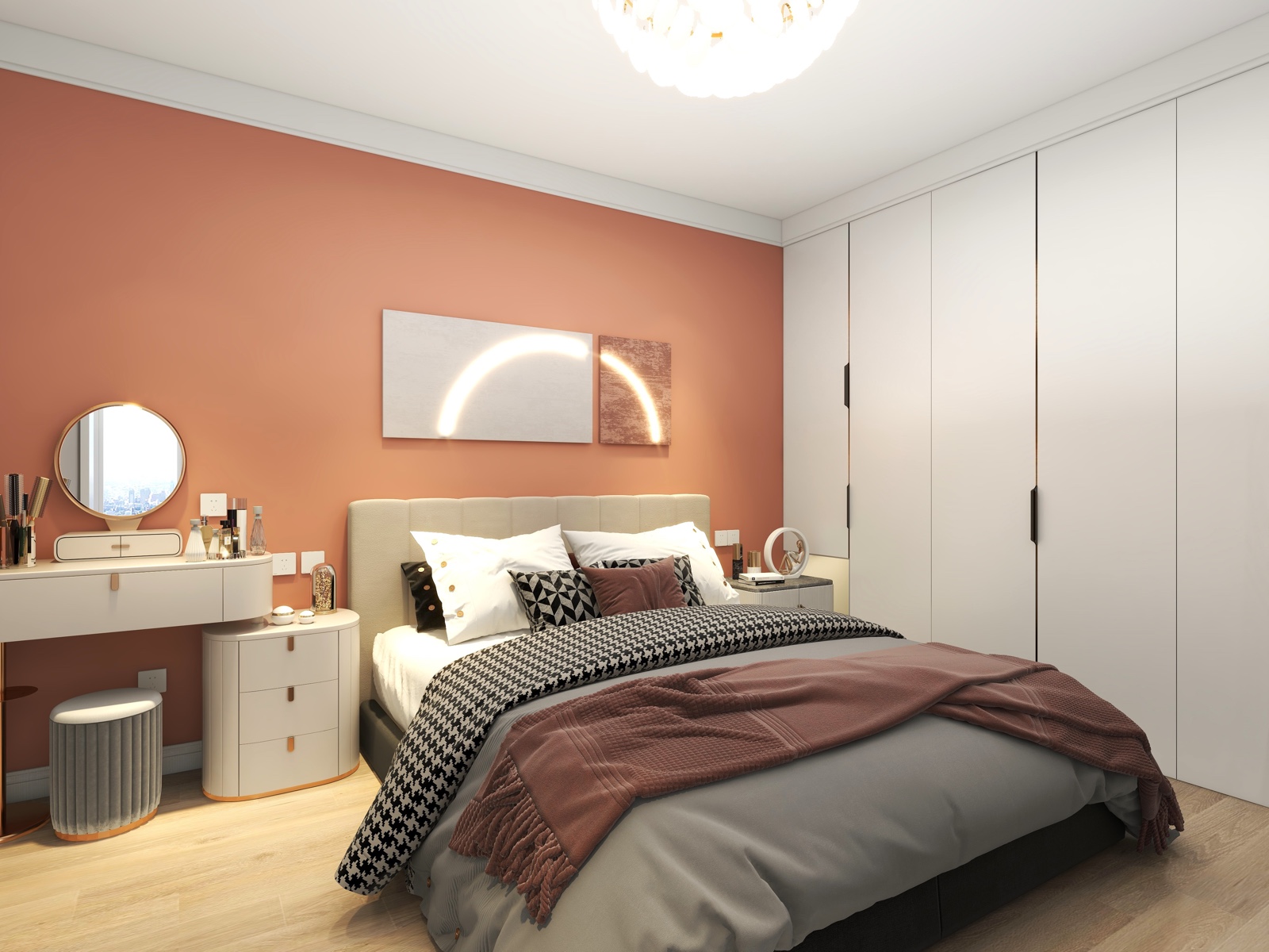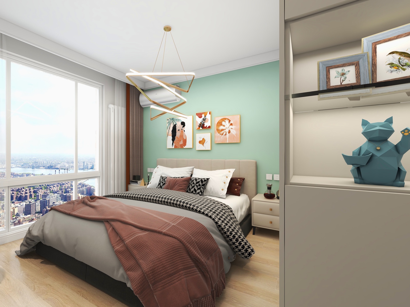 次臥是閨女住,但是采光比較差,用亮色來提高空間感。