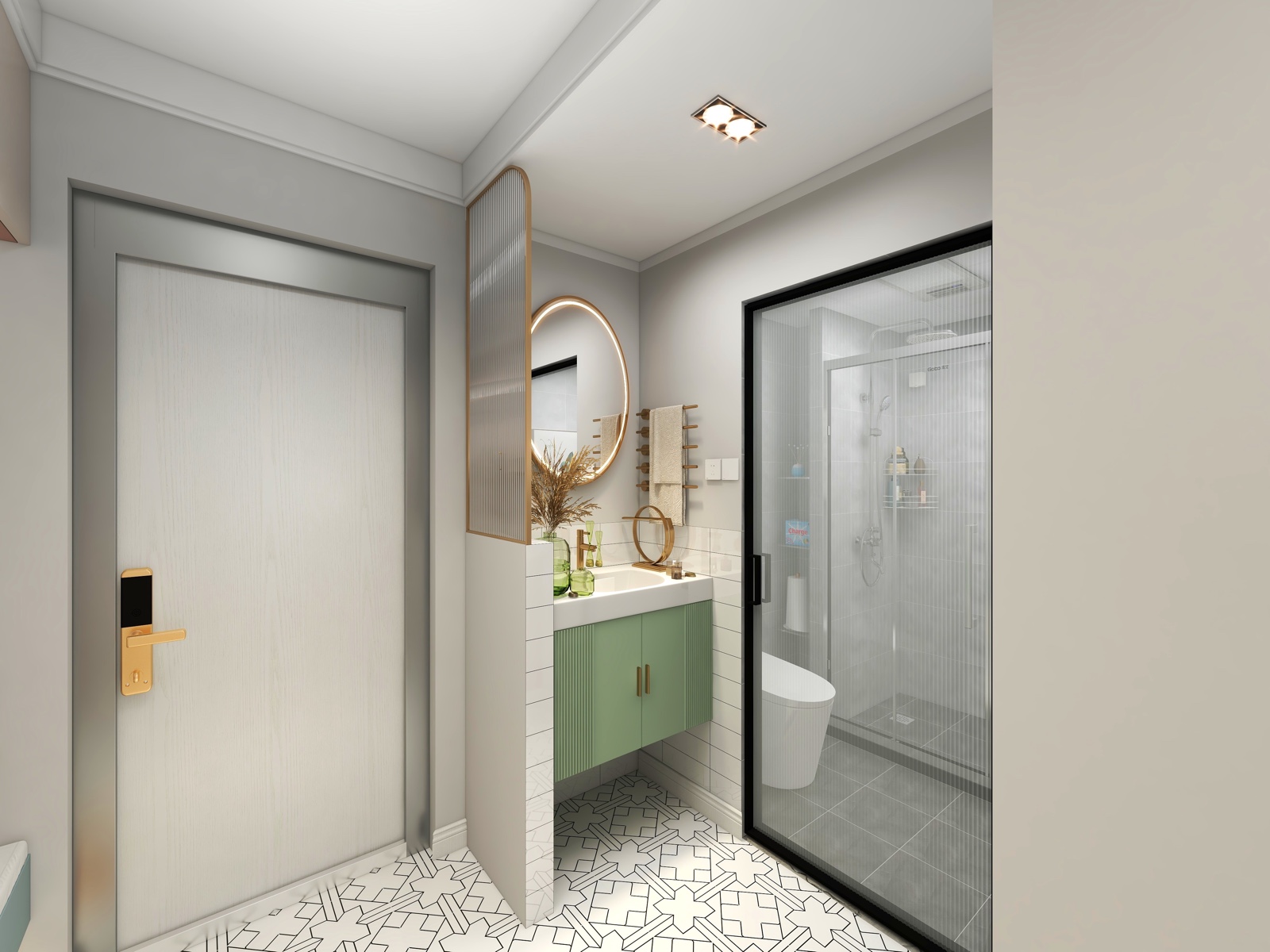 衛(wèi)生間改成干濕分離,用矮墻和玻璃在隔斷,既可以透光也可以區(qū)域劃分。