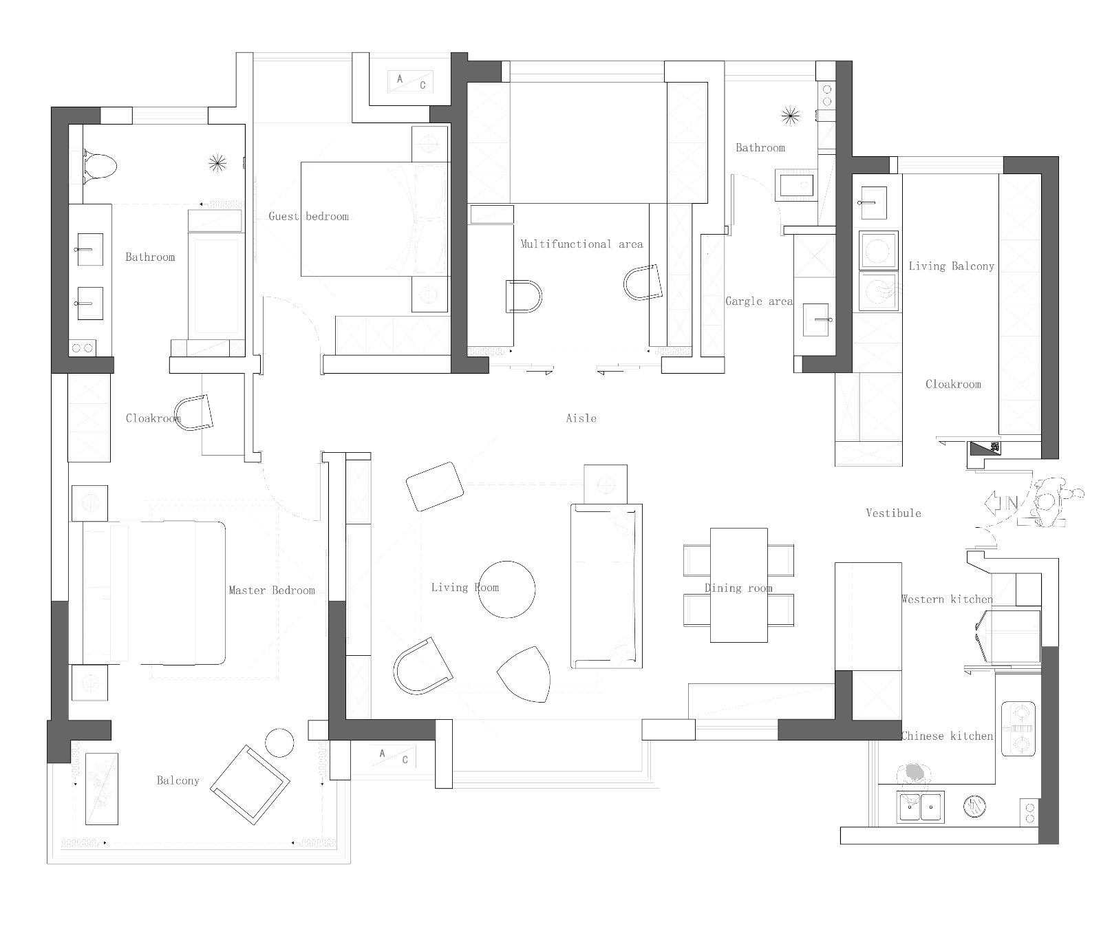 該戶型為三代人居住,還有寵物貓,格局需要改動一下。