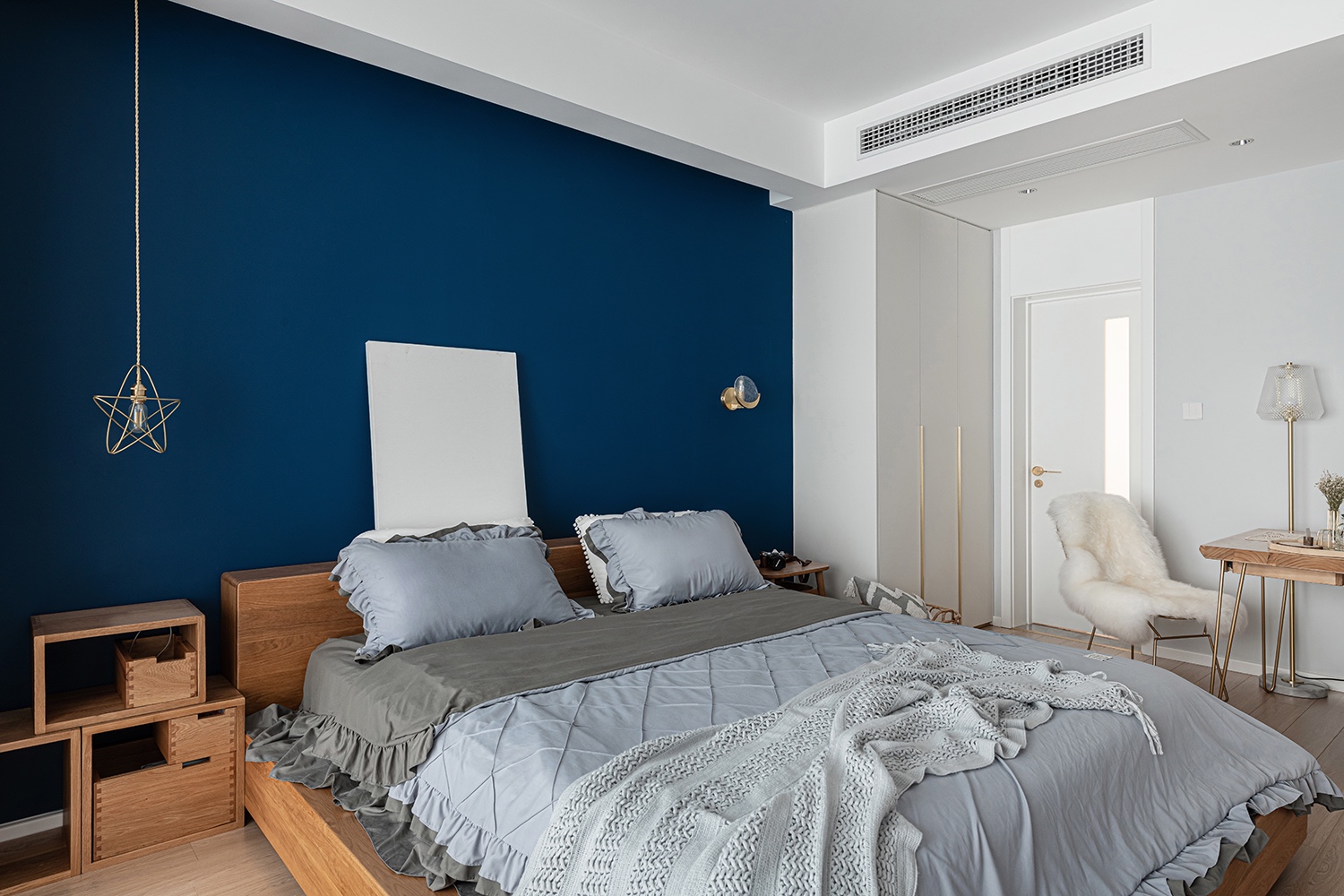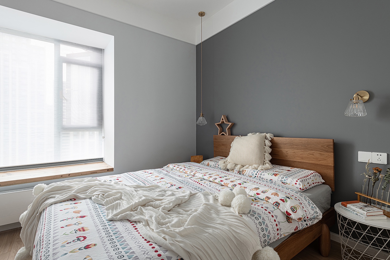 臥室比較簡單,單獨的刷一個淺灰色的墻漆。