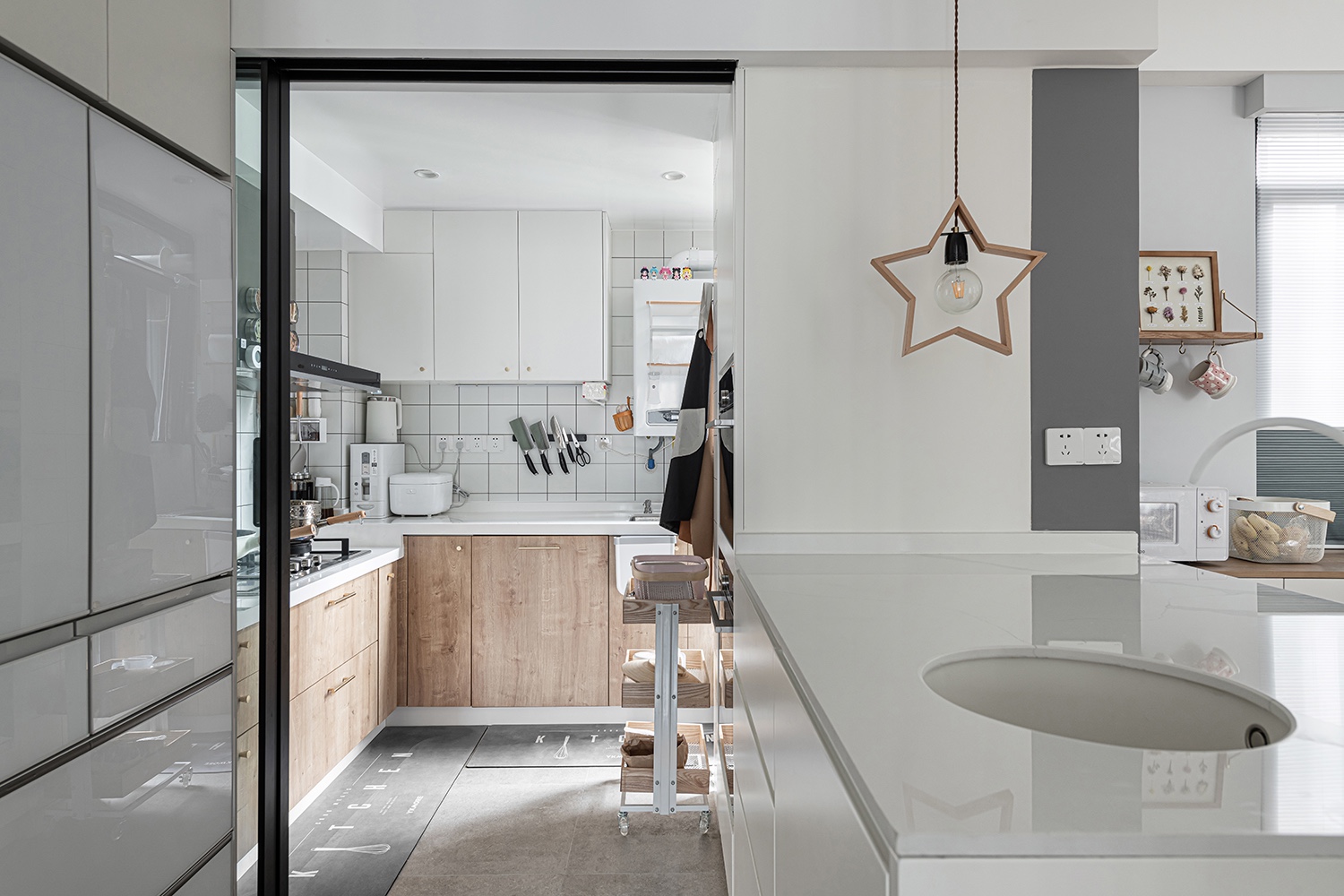客廳和廚房兩個空間改為一體,增加了采光和空間面積。