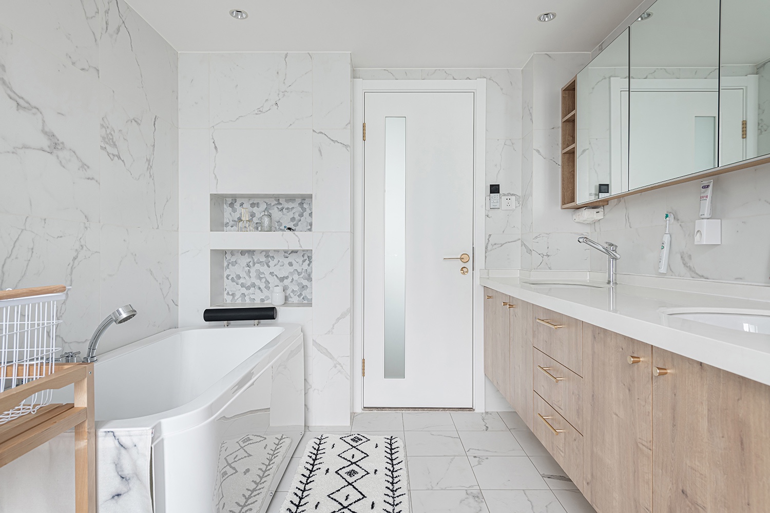 衛(wèi)生間空間面積比較大,采光也比較好,單獨預(yù)留一個浴缸,偶爾放松一下。