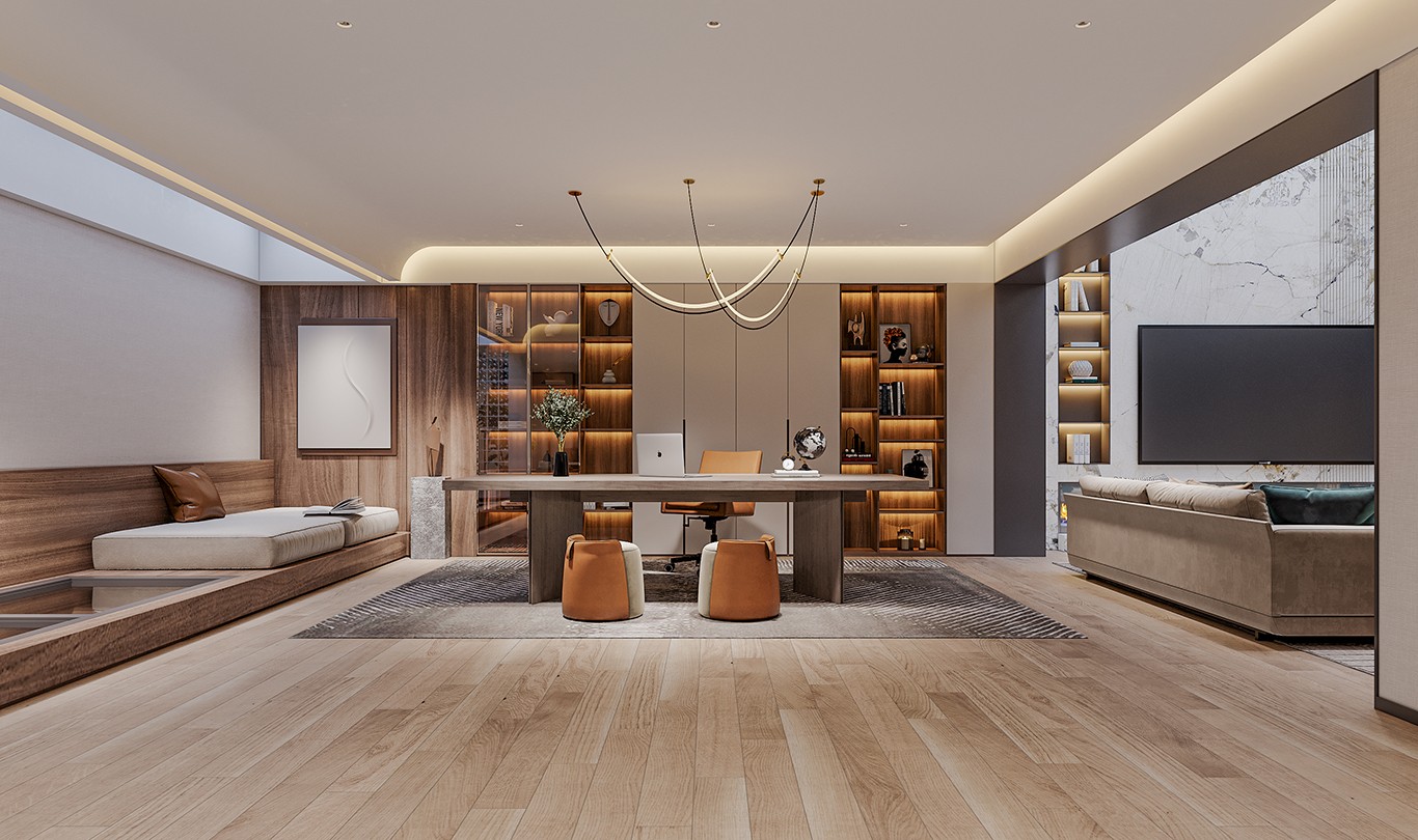 書房內(nèi)滿墻的開放格,滿足讀書愛好者的收納,太高地面放上坐墊,更有休閑的氣息