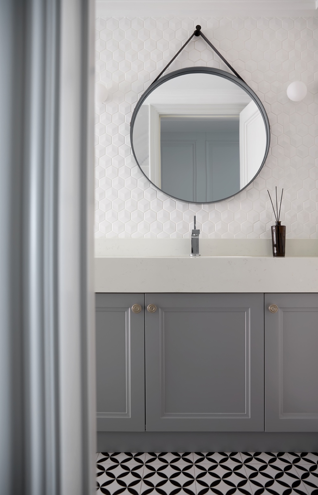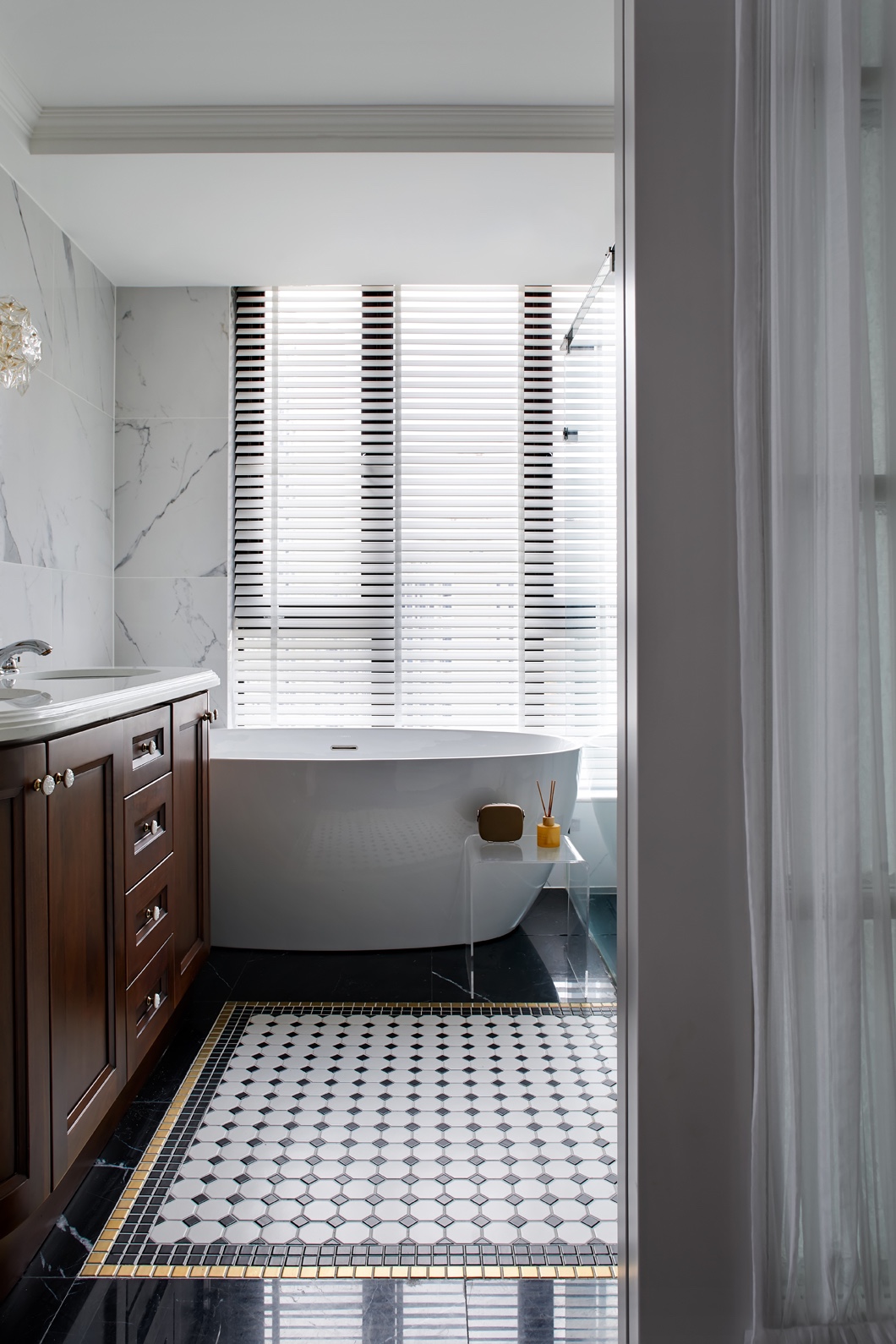 法式講究的就是復(fù)雜,瓷磚采用純色小馬賽克。