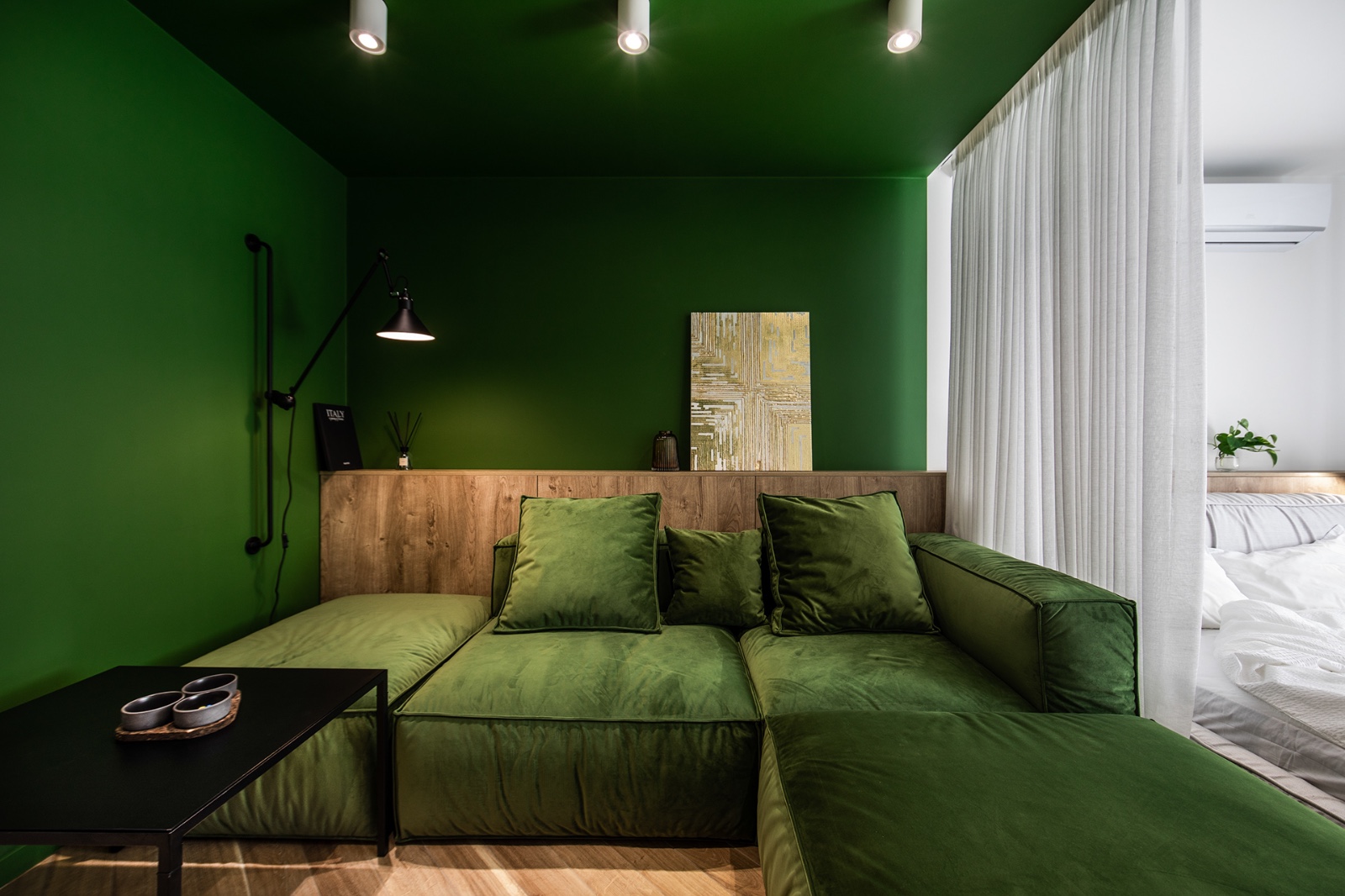 客廳和臥室為了突出不同功能感更強(qiáng),在色彩對(duì)比上進(jìn)行了大膽碰撞。
