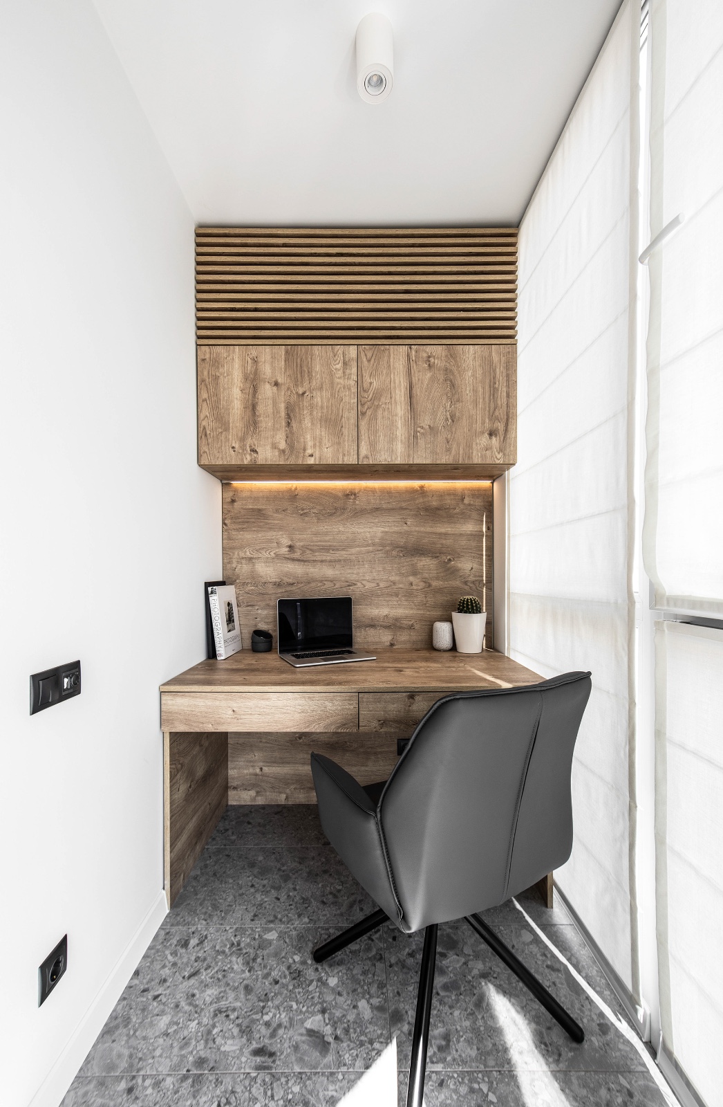 在陽(yáng)臺(tái)部分有一個(gè)書桌。