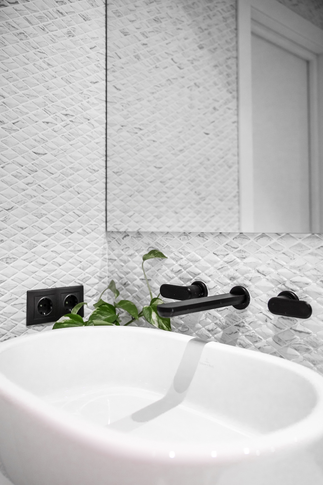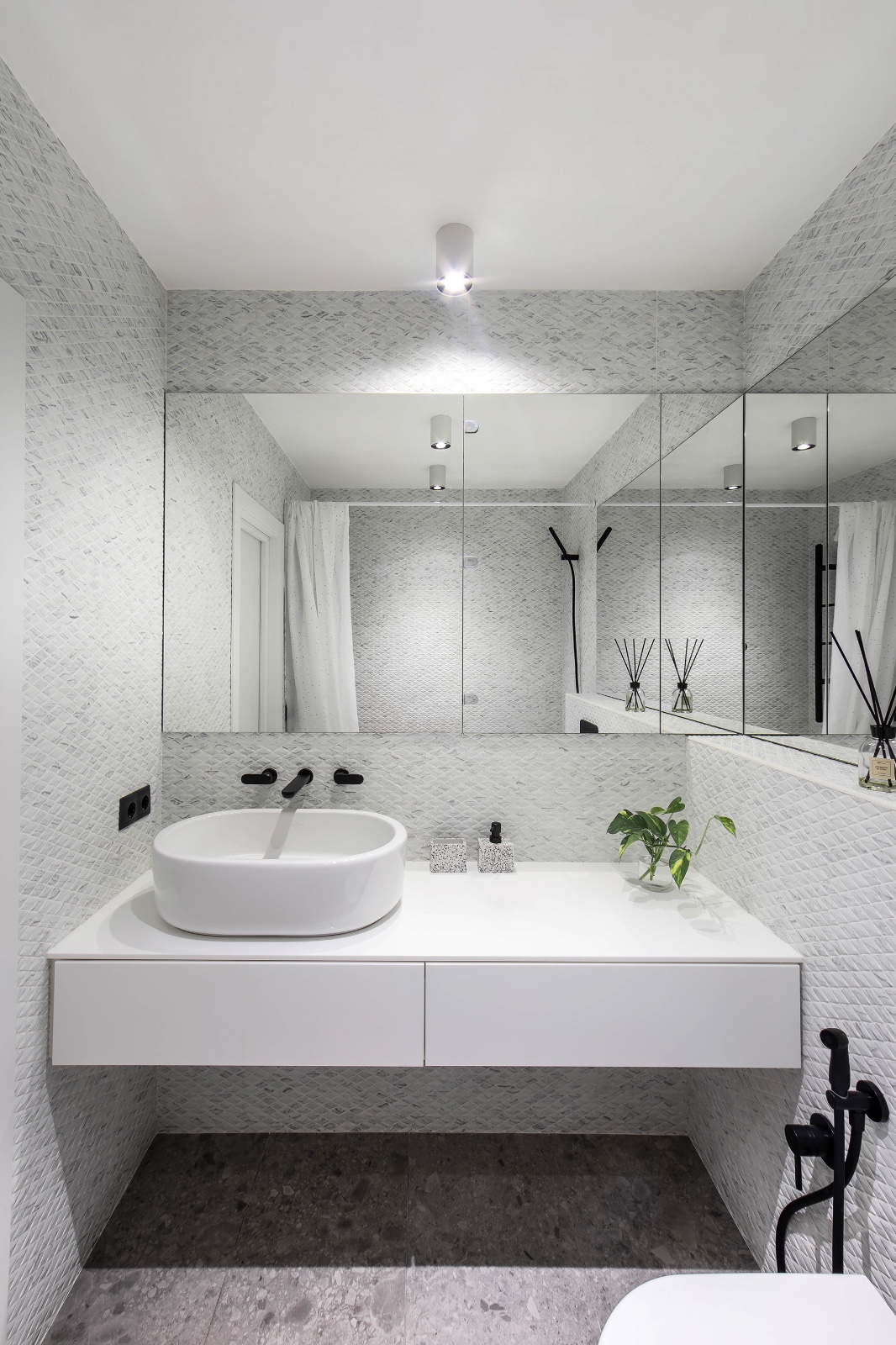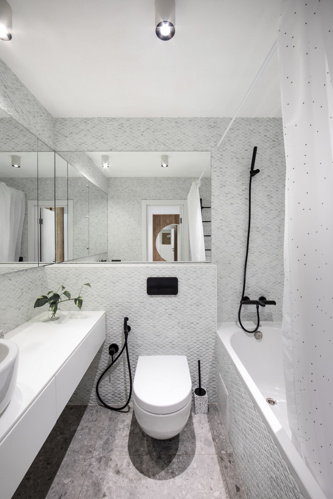 懸空浴室柜,,壁掛馬桶,浴缸一應(yīng)俱全。