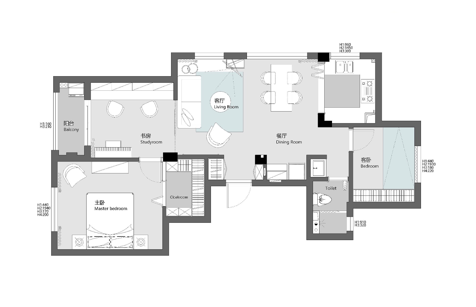 把廳格局調(diào)整后,廚房/客廳/餐廳都連為一體,空間感更強(qiáng)。