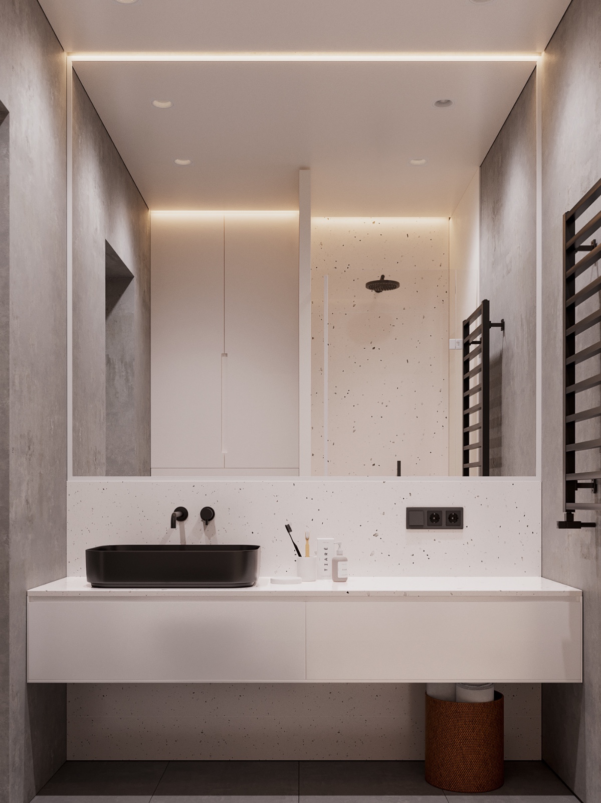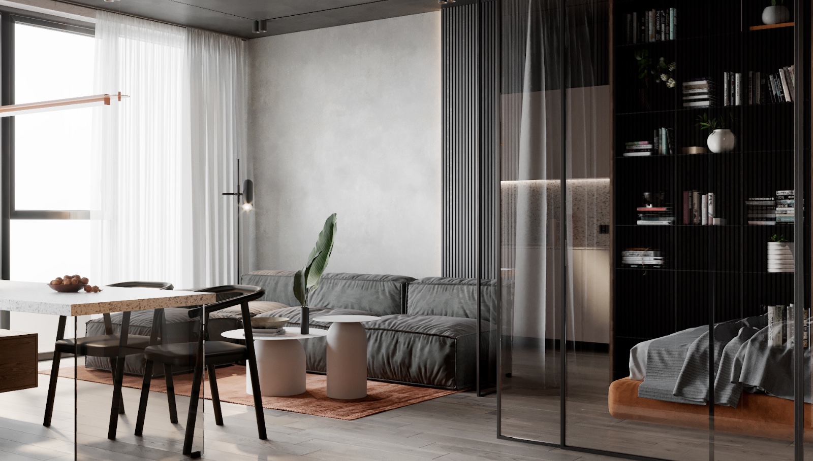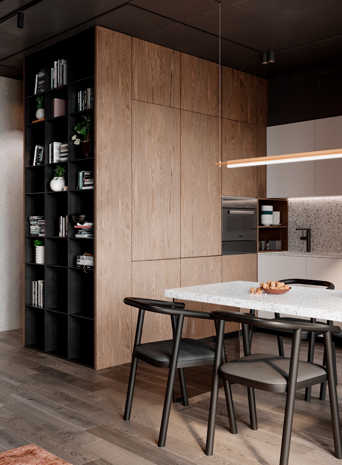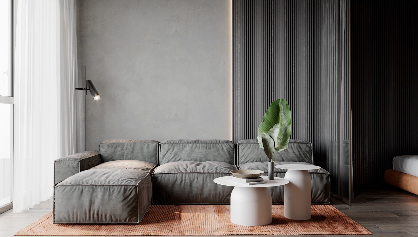 公寓的房高還是可以的,整體顏色以深色為主,背景用微水泥。