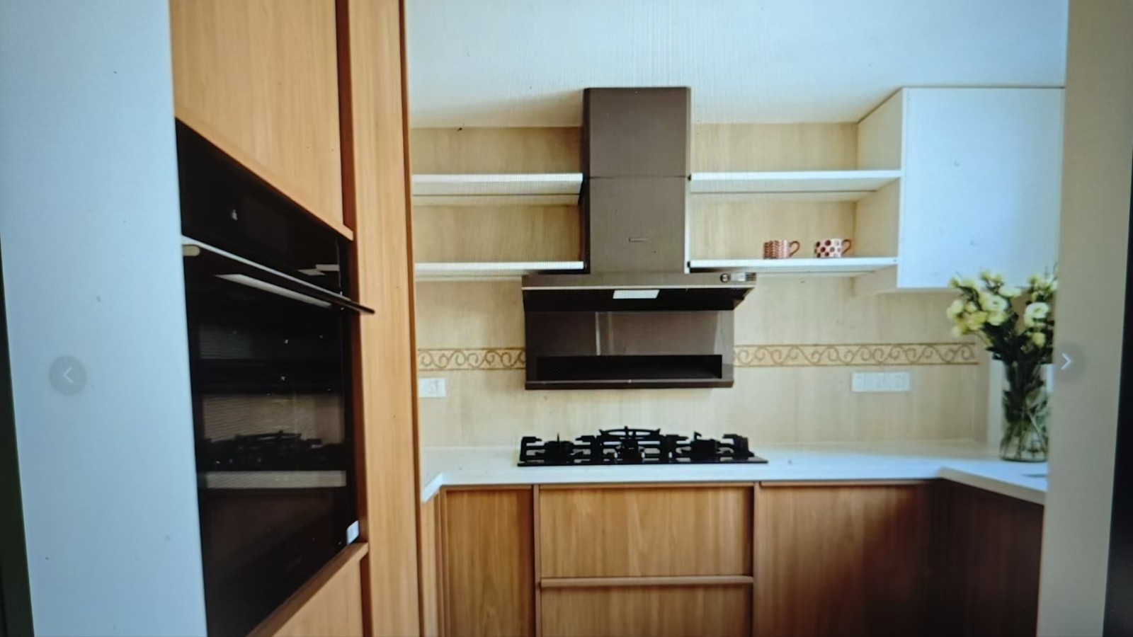 把廚房入口稍微改動(dòng)了一下,就變成了超實(shí)用的U型布局,操作起來更順手,空間利用也更高效。廚房里面還是用原來的原木材質(zhì),看著溫馨又自然。墻面特意加了花磚腰線做裝飾,原本單調(diào)的墻面一下子變得有趣起來,視覺效果豐富多了?;ùu的圖案和色彩,給廚房增添了不一樣的風(fēng)格,讓整個(gè)空間既實(shí)用又不失美觀,在這樣的廚房里做飯,心情都會(huì)變好。