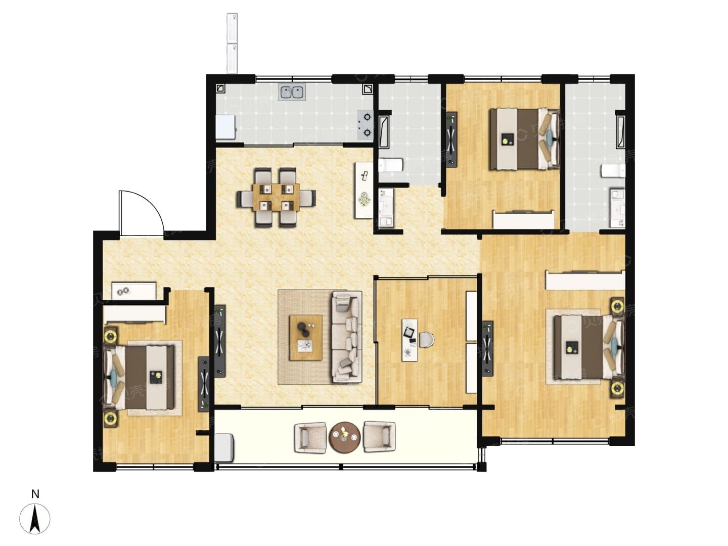 四房?jī)蓮d,布局方正,南北通透