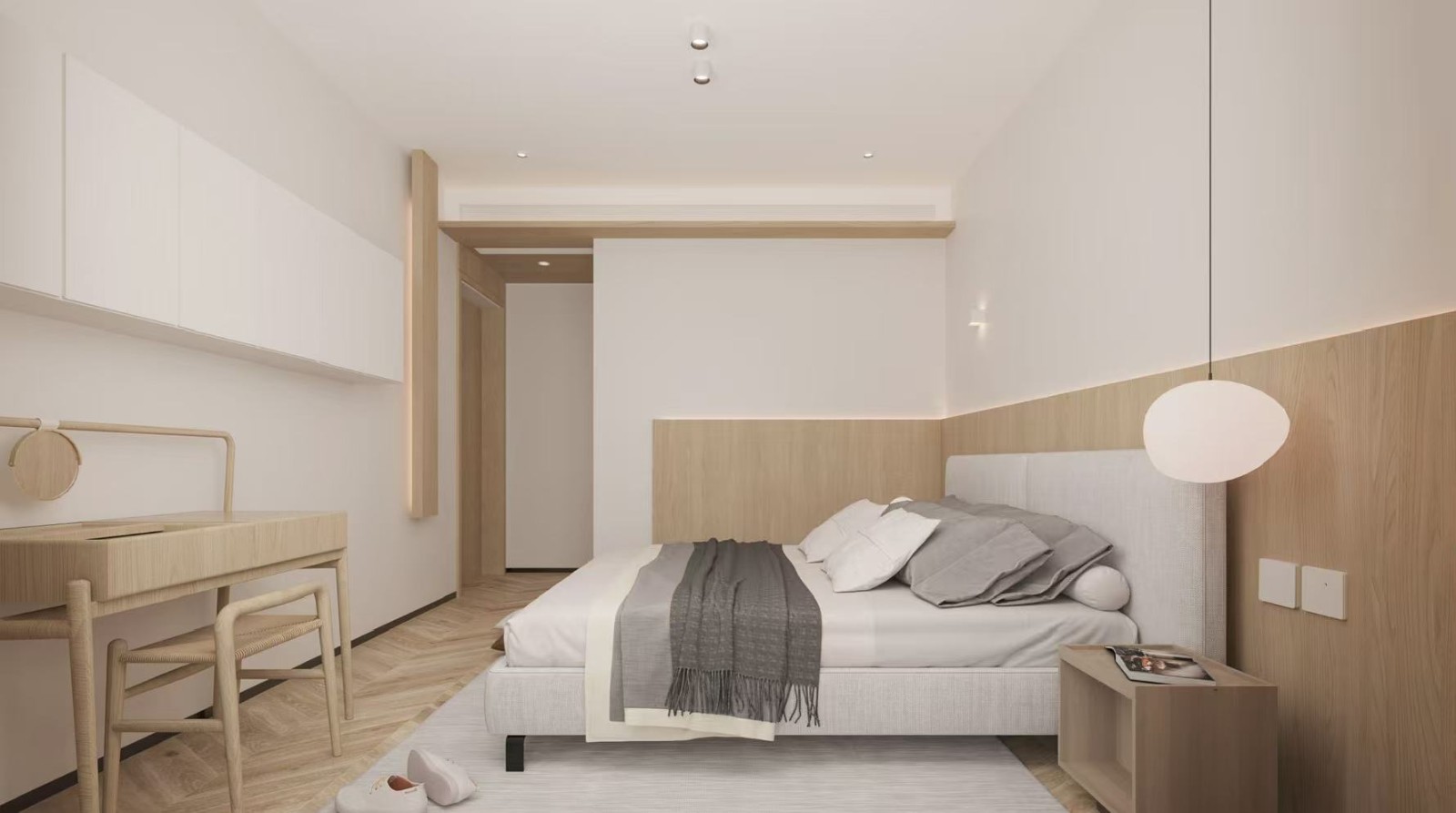 全屋以木飾面為主,營(yíng)造氛圍感