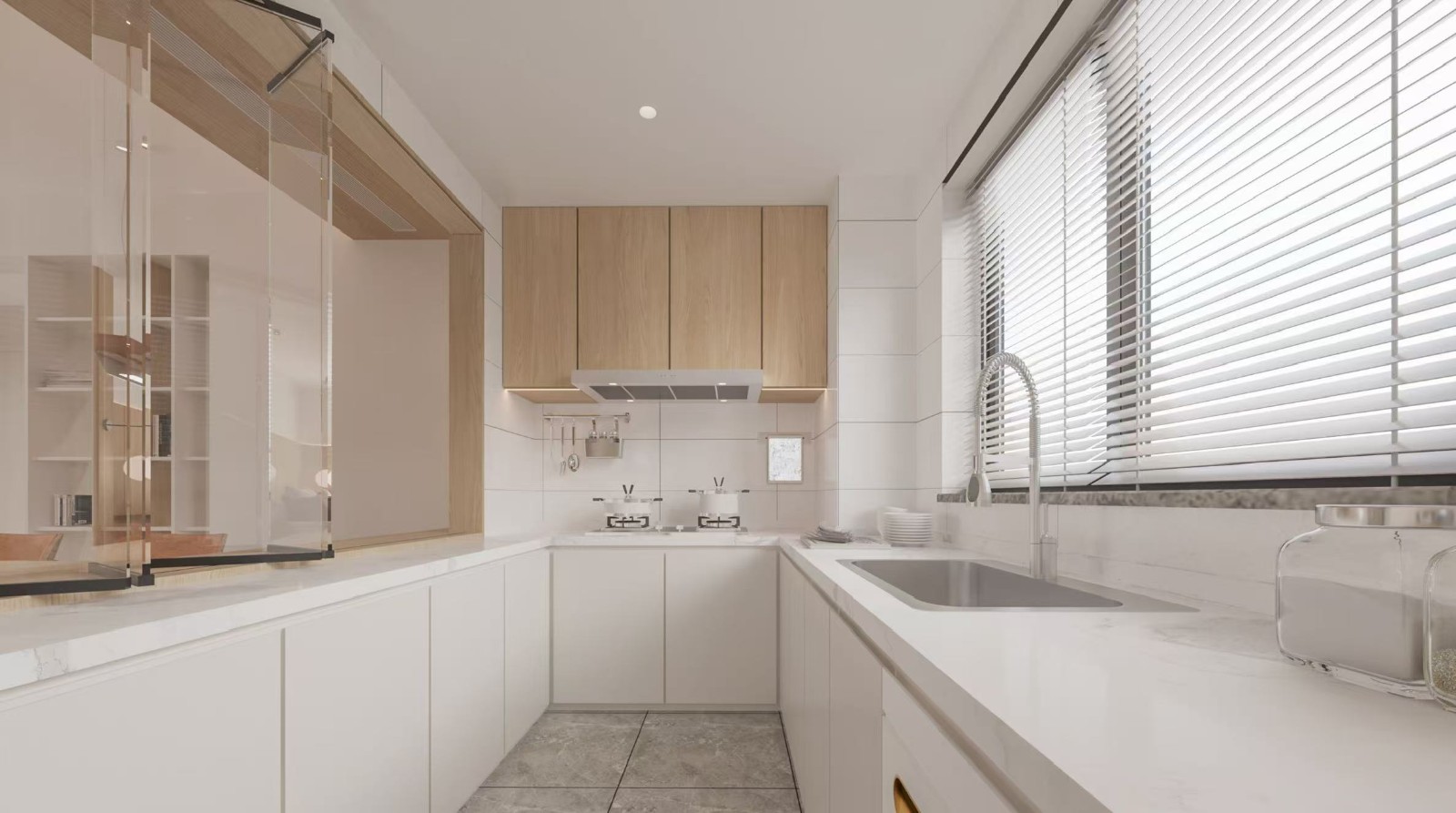 原木色櫥柜搭配白色地柜