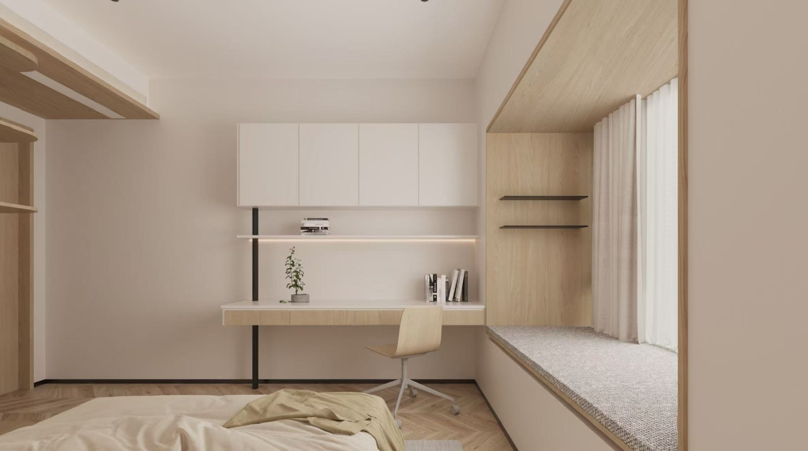 原木色搭配白色,讓空間更為溫和