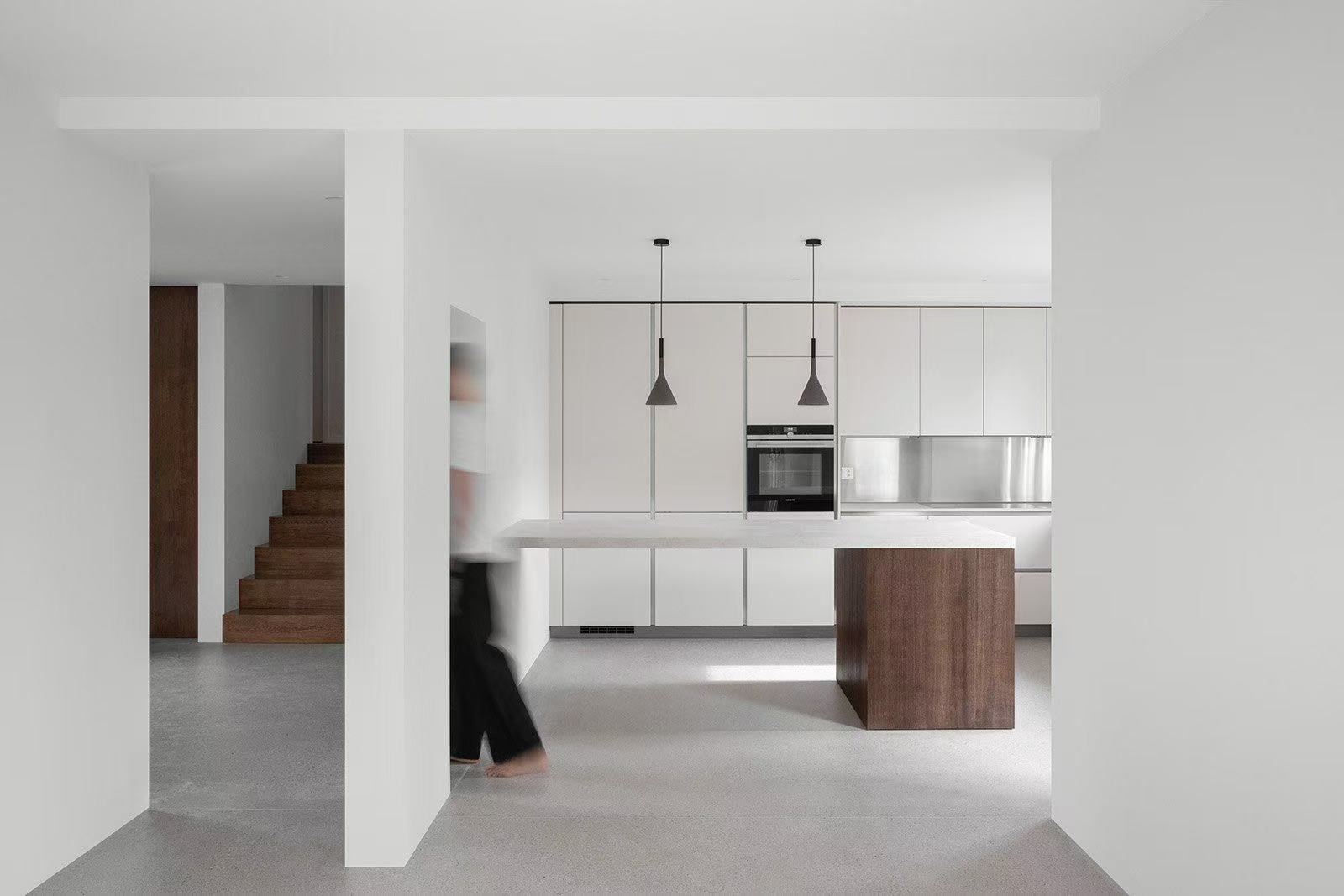 本案以“光”為媒介,在明與暗之間建立一種新的空間秩序。結(jié)構(gòu)體塊后退、柜體嵌墻、封閉墻面被打開(kāi)為雙窗面,光線順勢(shì)涌入,成為整個(gè)公共空間的組織者。