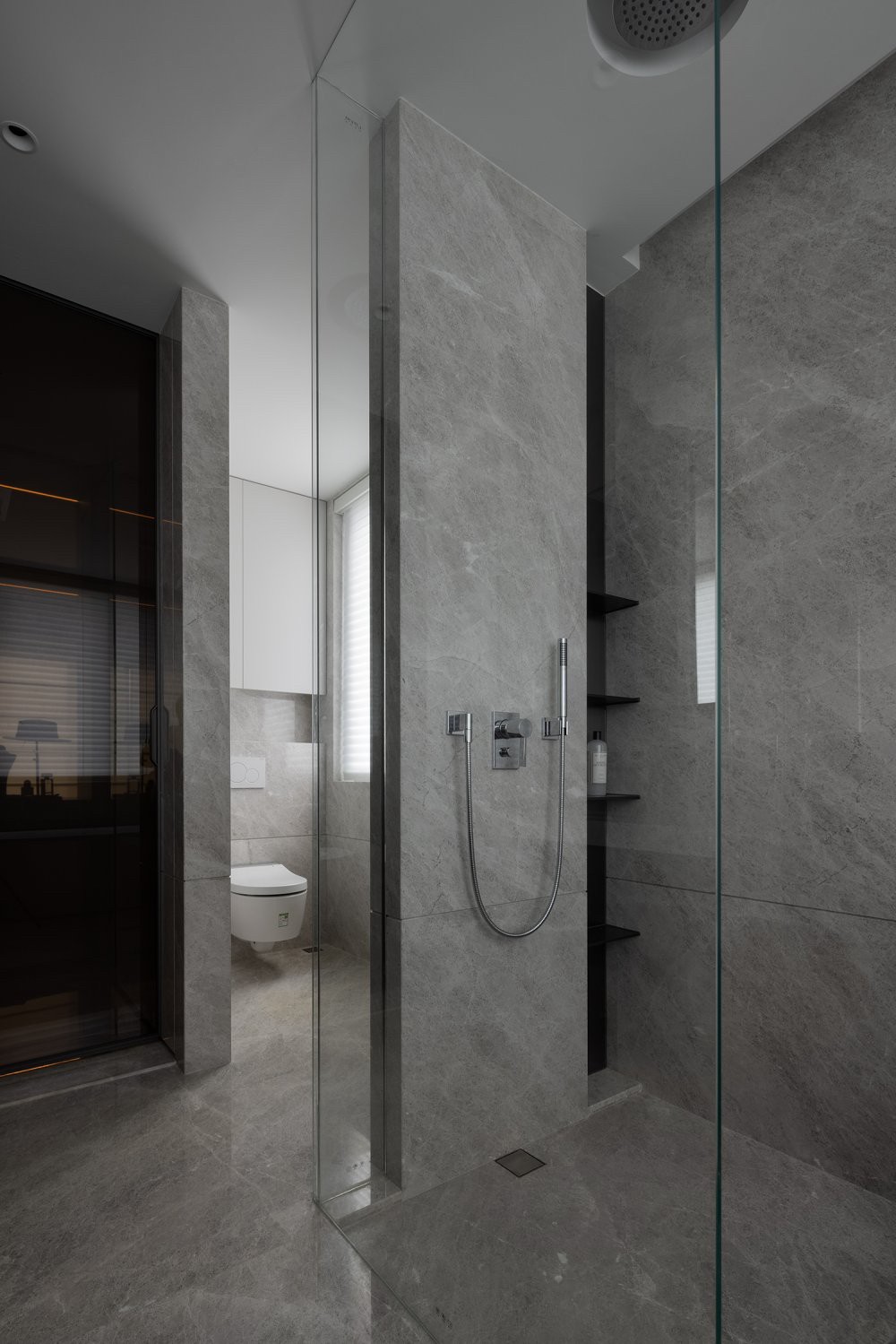 質(zhì)感的灰色調(diào)衛(wèi)生間。