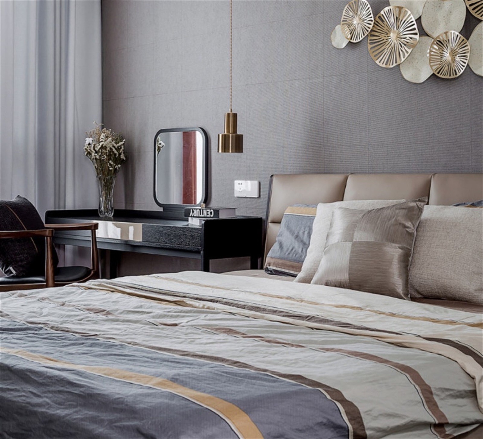 主臥設計得個性又別致,利于營造一個溫馨、舒適的睡眠氛圍。