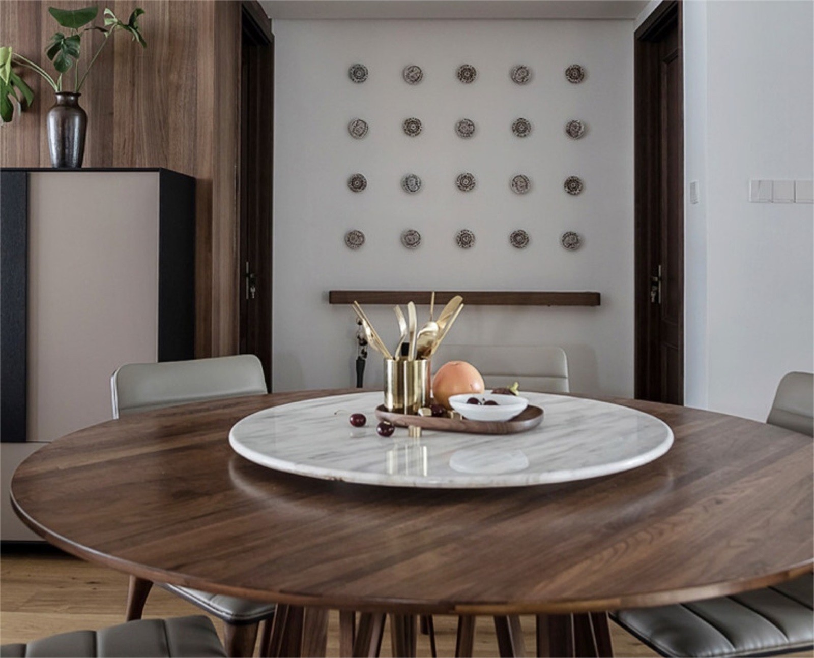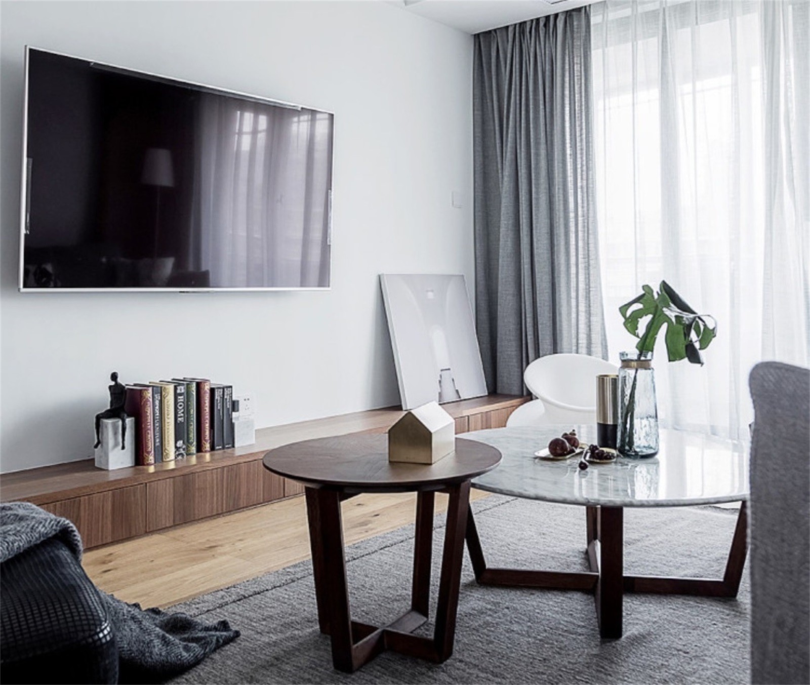 大理石和原木拼接的茶幾讓空間顯得格外有韻味。