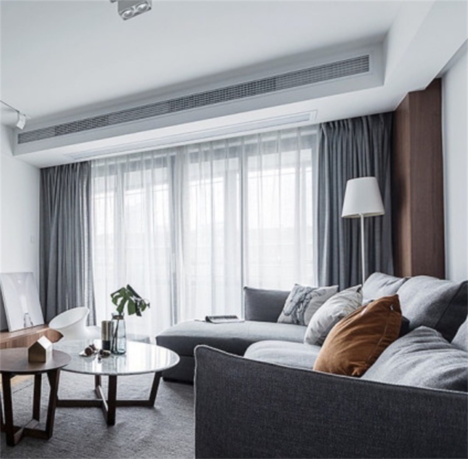 灰色的布藝沙發(fā)搭配灰色的地毯,有著一些北歐風(fēng)的感覺。