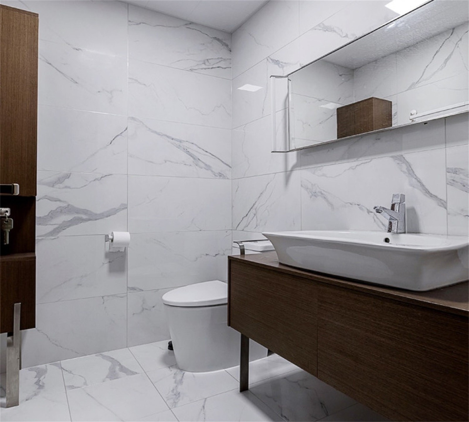 衛(wèi)生間做了干濕分離的設(shè)計,地面還鋪貼了大理石瓷磚,整個衛(wèi)生間看起來簡潔又大方。