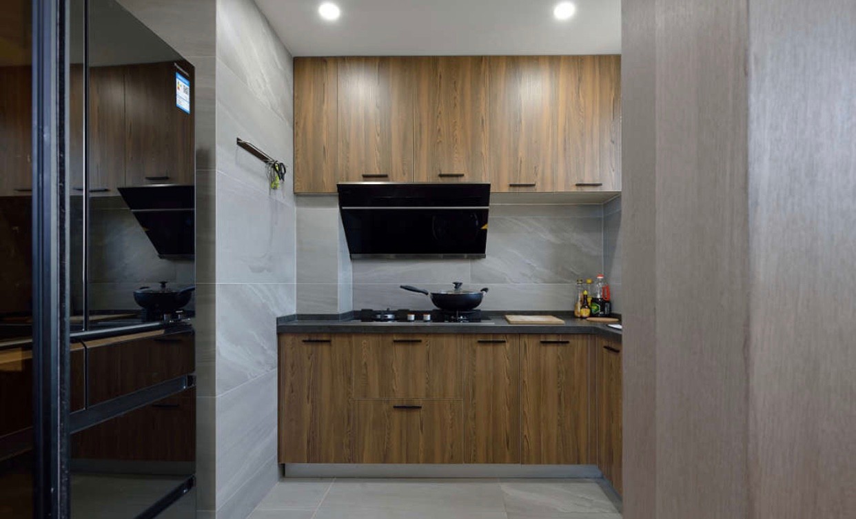 整個空間收納能力巨大,黑色的操作臺面看起來更干凈、整潔。