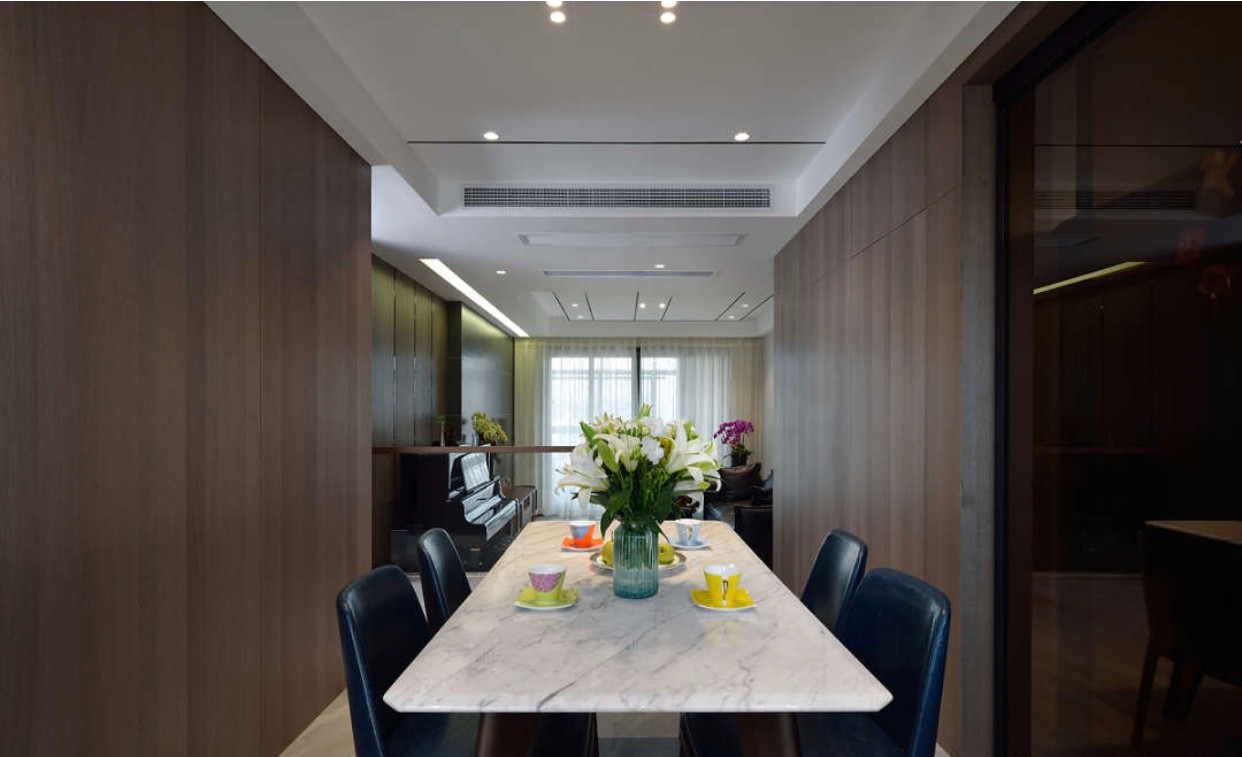 餐廳大理石餐桌+皮質(zhì)餐椅,輕松滿足全家人就餐。