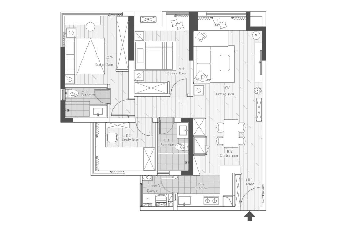 擁有超大L型視野窗的主臥,真實而自然的原木色調,搭配灰色系軟飾品,讓空間呈現(xiàn)出一種精致的形式表達