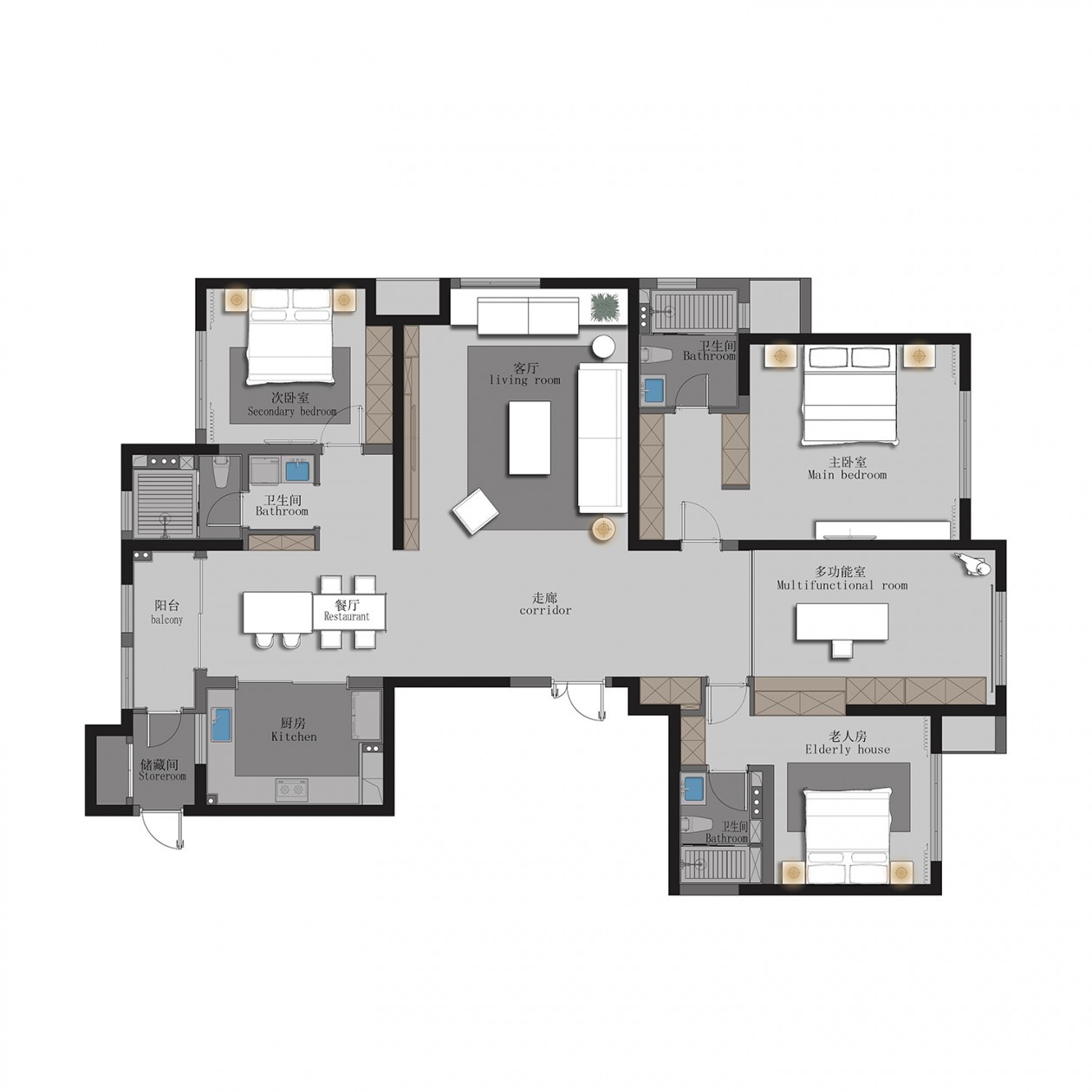 ,設(shè)計上一直相信,客廳、主臥等面積較大的空間保留最簡單的留白設(shè)計, 因為它們通常都處于房子里***的位置,擁有***的采光和視野,因而只需要通過簡單的裝飾來點(diǎn)綴。