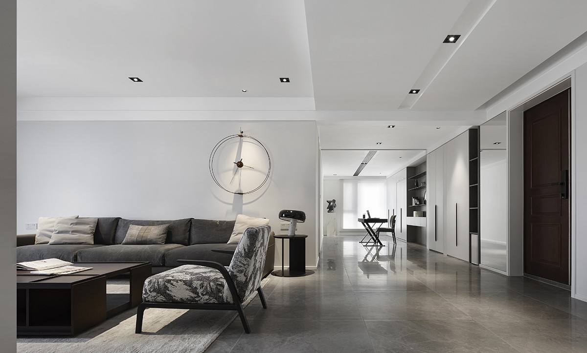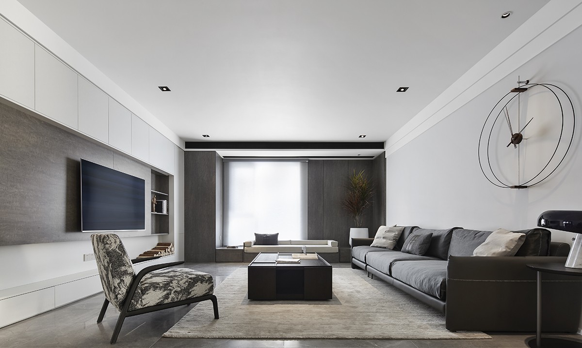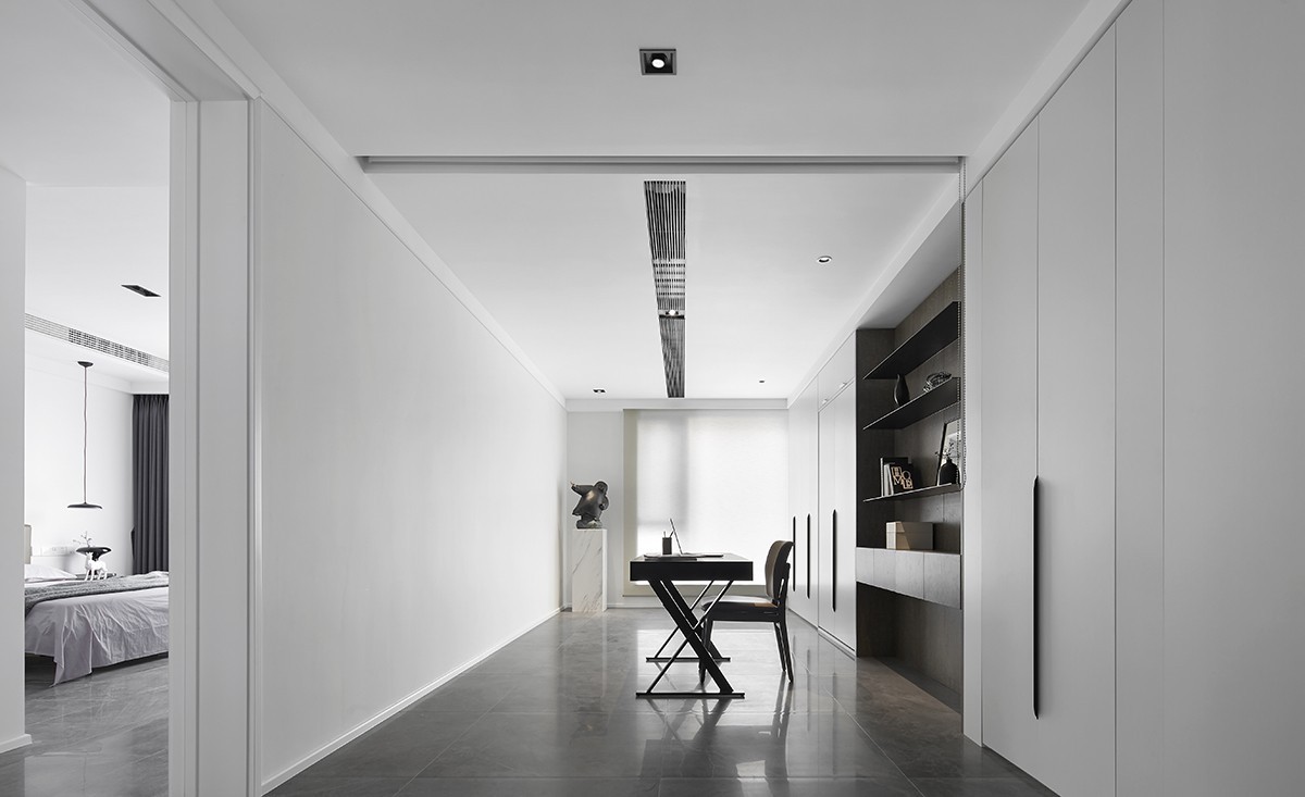 整體采用黑白極簡風(fēng)格,無主燈設(shè)計。設(shè)計上一直相信,客廳、主臥等面積較大的空間保留最簡單的留白設(shè)計, 因為它們通常都處于房子里***的位置,擁有***的采光和視野,因而只需要通過簡單的裝飾來點(diǎn)綴。